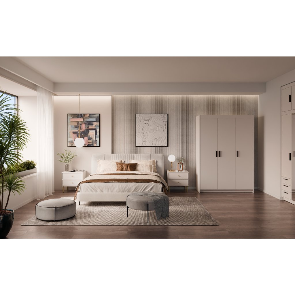 Šatní skříň 3D / pískově béžová je vyrobena z kvalitního lamina 15 mm, které zaručuje odolnost, dlouhou životnost i Vaši spokojenost. Praktické vnitřní provedení, nadčasové béžové linie, dokonalý design a moderní vzhled je typickým znakem nábytku. Krásné černé plastové úchyty dodávají celkový šmrnc skříni. Tak už více neváhejte a dopřejte své ložnici nádech dokonalosti v podobě šatní skříně ELLEN 3D / pískově béžová. V případě zájmu je možné doobjednat i nástavec na skříň ELLEN 3D / pískově béžová . Pro více úložného místa je k dispozici i kontejner ELLEN .