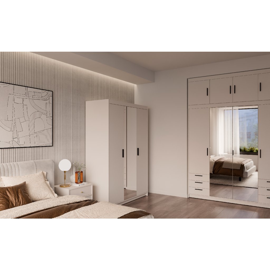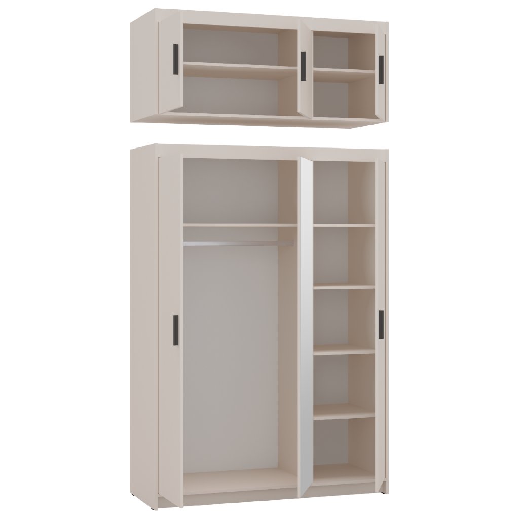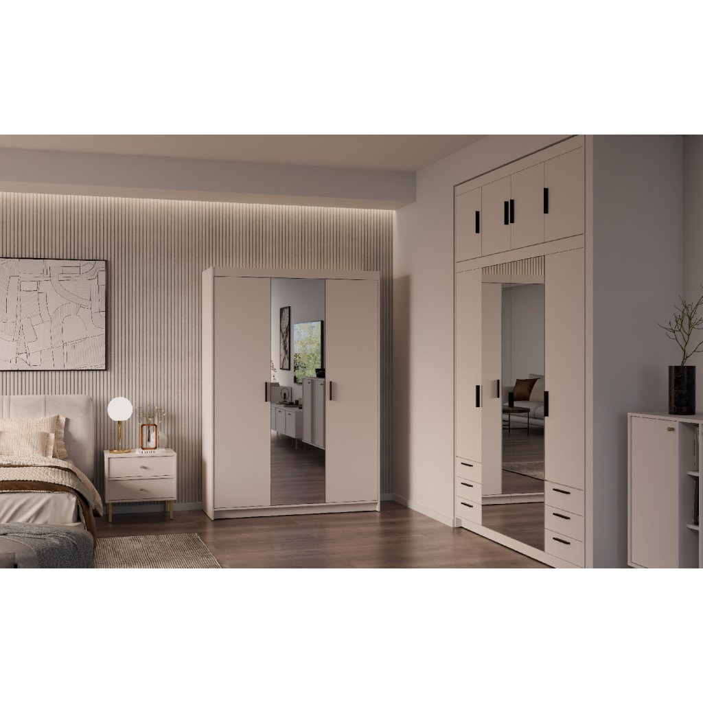 Šatní skříň ELLEN 3D se zrcadlem | pískově béžová