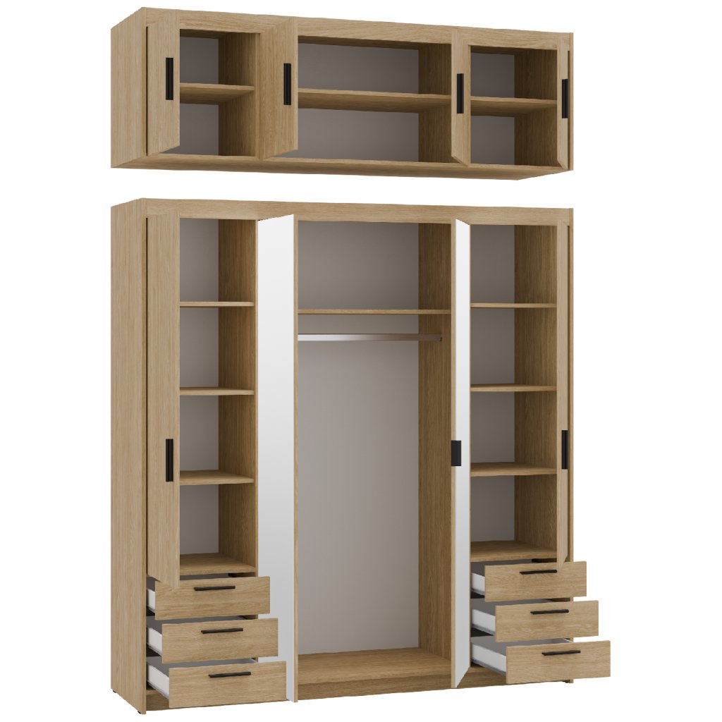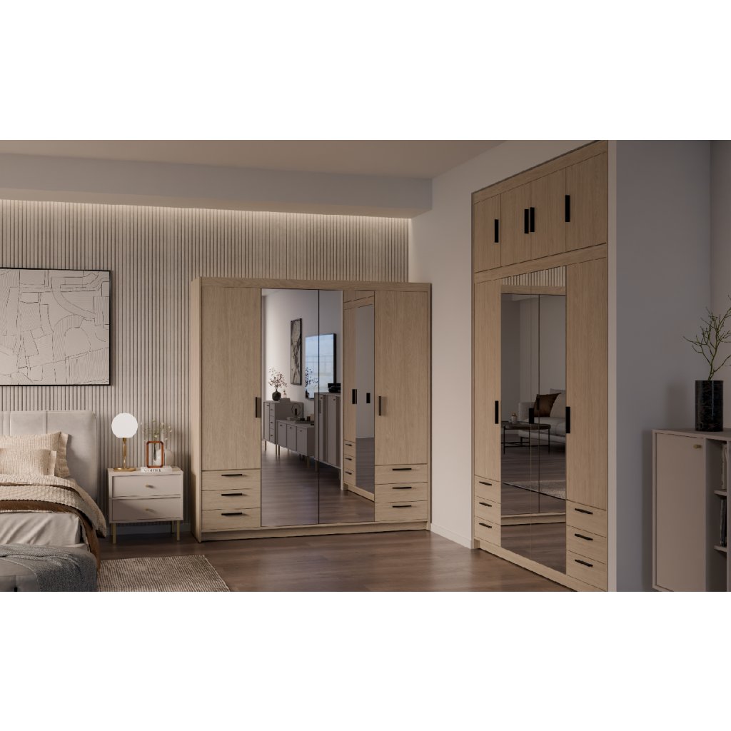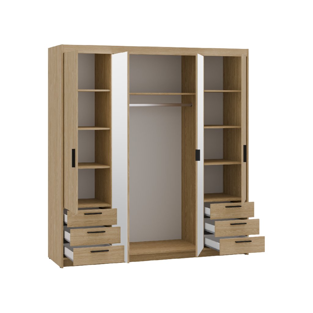 Šatní skříň ELLEN 4D6S se zrcadlem | dub olejovaný