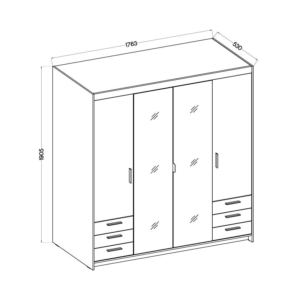 Široká šatní skříň 4D6S se zrcadlem/dub olejovaný je vyrobena z kvalitního lamina 15 mm, které zaručuje odolnost, dlouhou životnost i Vaši spokojenost. Praktické provedení, mimořádně zrcadlové dveře, nadčasové barevné provedení, dokonalý design a moderní vzhled je typickým znakem nábytku. Krásné černé plastové úchyty dodávají celkový šmrnc skříni. Tak už více neváhejte a dopřejte své ložnici nádech dokonalosti v podobě šatní skříně ELLEN 4D6S/dub olejovaný. V případě zájmu je možné doobjednat i nástavec na skříň ELLEN 4D/dub olejovaný . Pro více úložného místa je k dispozici také kontejner ELLEN .