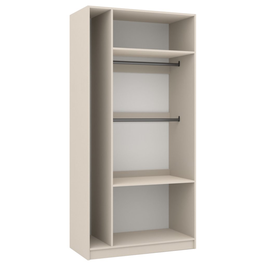 Tato moderní dvoudveřová šatní skříň z kolekce FOX nabízí dostatek úložného prostoru v elegantním a jedinečném designu. Elegantní linie a jemný odstín cashmere působí čistě a snadno se kombinují s ostatním nábytkem v interiéru. Skříň je vyrobena z 16 mm laminované nábytkové desky , která zajišťuje stabilitu a pevnost konstrukce. Díky modulovému systému je skvělou součástí vyskládané šatní sestavy dle individuálních potřeb.