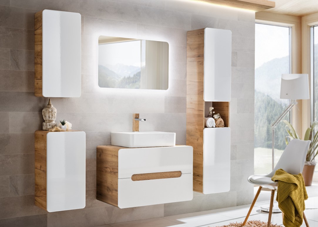 Toužíte po trendy koupelnové sestavě, která bude i po několika letech působit nadčasově a moderně? Pak je pro Vás koupelnová sestava Aruba White tou správnou volbou. Sestava je vyrobena v atraktivní barevné kombinaci dub craft zlatý s bílým leskem, která je prostě nesmrtelná. Pohodlné a snadné každodenní používání koupelnové sestavy zajistí tlumené zavírání dvířek a zásuvek. Výhodou koupelnové sestavy ARUBA WHITE je široká nabídka jednotlivých prvků, které se dají navzájem snadno kombinovat, a tak si vytvoříte koupelnu podle vašich představ a potřeb.