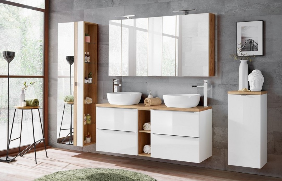 Sestava do koupelny CAPRI White nabízí velké množství možností, jak si vyskládat koupelnu dle vašich prostorových možností. Originální moderní design a kvalitní provedení Vás přesvědčí, že Capri white je ta pravá sestava do vaší koupelny. Koupelnová sestava má ve standardu tiché dovírání, které zvyšuje komfort používání. Dvířka lze namontovat jako levou i pravou variantu.