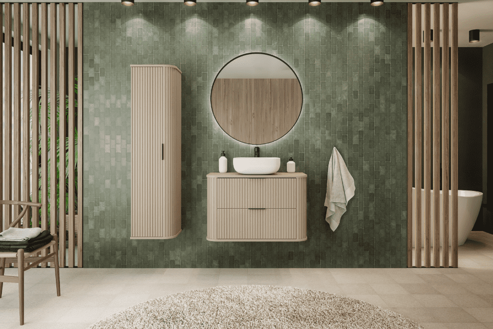 Kašmírová barva je ideální, pokud chcete koupelnu zjemnit a dodat jí elegantní, přirozeně teplý charakter. Moderní koupelnová sestava ELEGANCE CASHMERE v odstínu kašmír vyniká lamelovým/rýhovaným designem na čelech, který působí prémiově a zároveň nadčasově. Jemný neutrální tón se výborně kombinuje se dřevem, béžovými obklady, kamenem i černými doplňky – koupelna díky tomu působí harmonicky a „designově“ bez rušivých kontrastů.