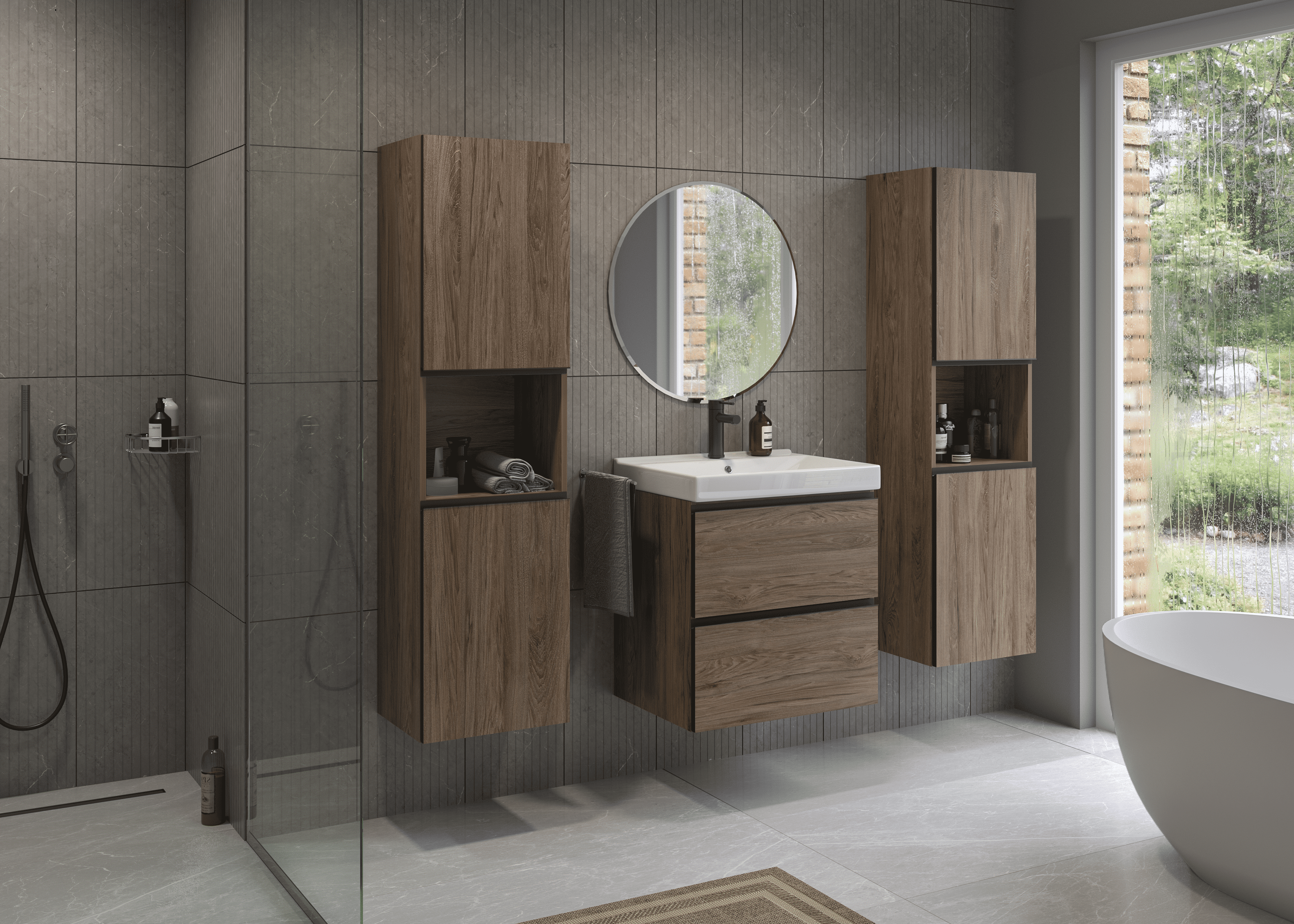 Chcete dodat své koupelně teplý a luxusní nádech? Skříňky do koupelny LOZANO v barvě ořech rockford jsou skvělou volbou pro ty, kteří upřednostňují dekory s decentním vzhledem. Tento odstín dřeva se vyznačuje bohatou kresbou a hřejivými tóny, které krásně doplňují moderní i klasické interiéry. Kolekce se skvěle se kombinuje s bílou sanitou, černými doplňky i kovovými prvky. Chcete-li si vytvořit harmonický interiér, kombinujte sestavu se světlými dlažbami nebo kamenem.