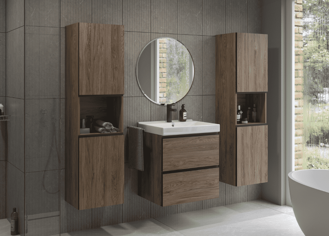 Chcete dodat své koupelně teplý a luxusní nádech? Skříňky do koupelny LOZANO v barvě ořech rockford jsou skvělou volbou pro ty, kteří upřednostňují dekory s decentním vzhledem. Tento odstín dřeva se vyznačuje bohatou kresbou a hřejivými tóny, které krásně doplňují moderní i klasické interiéry. Kolekce se skvěle se kombinuje s bílou sanitou, černými doplňky i kovovými prvky. Chcete-li si vytvořit harmonický interiér, kombinujte sestavu se světlými dlažbami nebo kamenem.