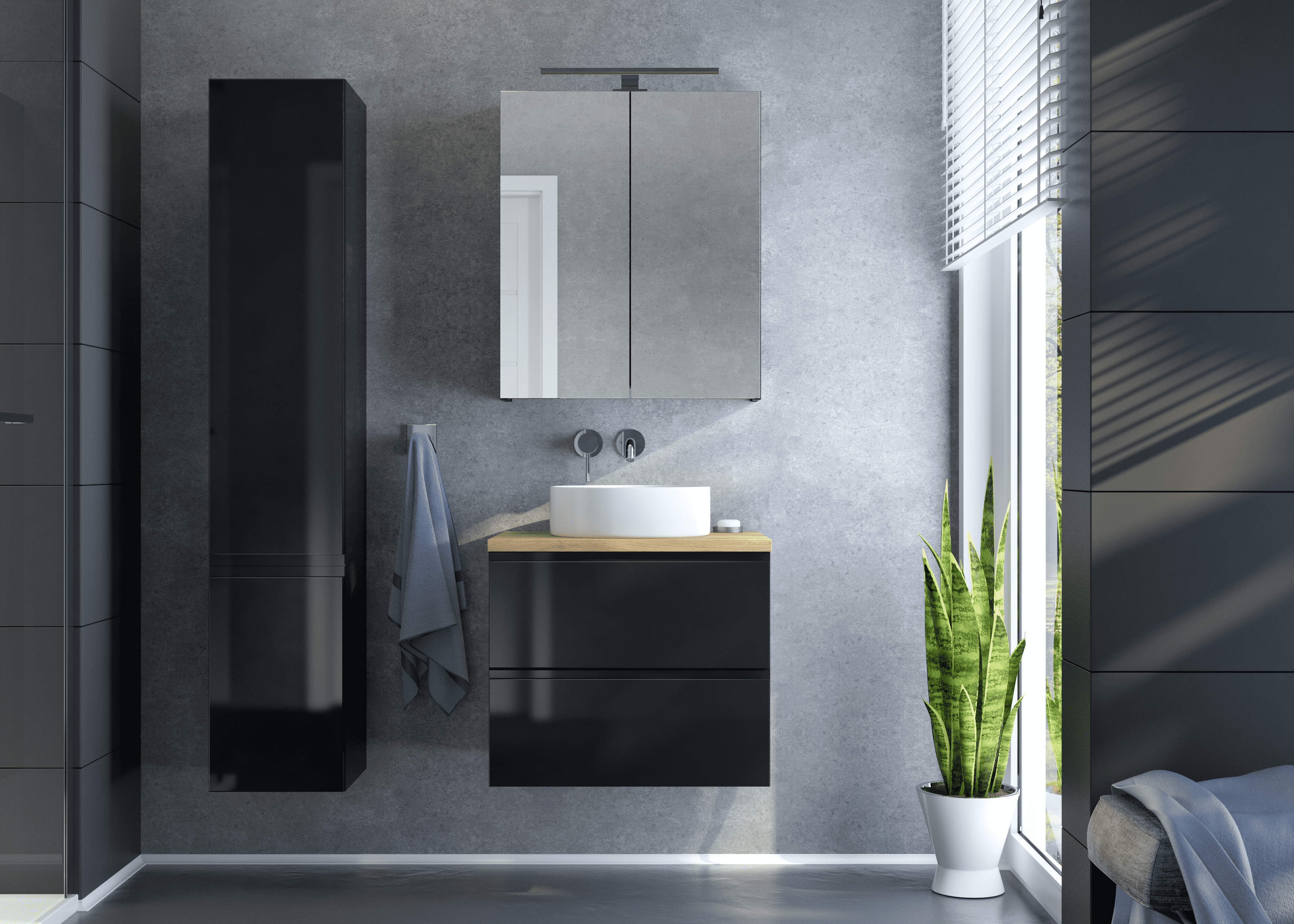 Černá barva v koupelně je symbolem sofistikovanosti a designu. Černé skříňky do koupelny MODUS BLACK jsou ideální pro ty, kdo chtějí do svého interiéru přidat stylový a nadčasový vzhled. Jejich lesklý povrch odráží světlo, čímž opticky zvětšuje prostor a dodává exkluzivní nádech. Černá barva se skvěle hodí k dřevěným či mramorovým prvkům v bílém provedení. Frézované úchyty působí se skříňkou harmonicky a nenarušují celkový vzhled.