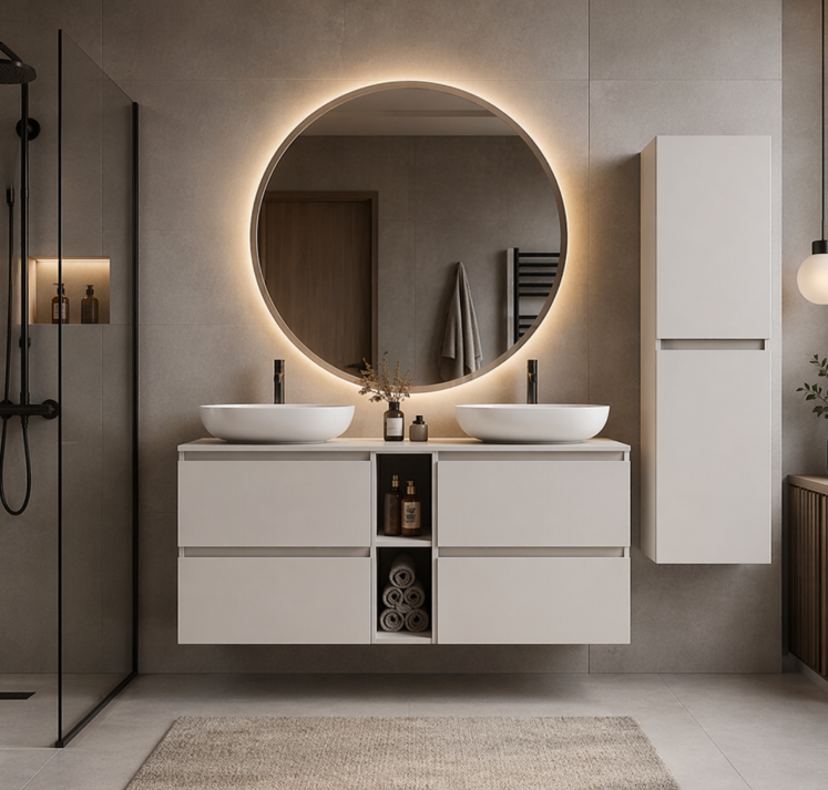 Koupelna dnes není jen praktickým prostorem, ale místem odpočinku a každodenní pohody. Vyberte si koupelnové skříňky SIMPLE CASHMERE, které spojí estetiku s funkčností a proměňte svoji koupelnu na moderní a útulný prostor. Koupelnové skříňky s umyvadlem představují ideální spojení funkčnosti a designu. Díky promyšlenému úložnému prostoru, kvalitním materiálům a modernímu vzhledu se stanou dominantou každé koupelny – ať už zařizujete nový interiér nebo jen hledáte stylovou obnovu. Praktickým doplňkem je také vysoká koupelnová skříňka, která rozšíří úložný prostor bez zbytečného zabírání místa. Spolu tak vytvoříte harmonický a funkční celek.