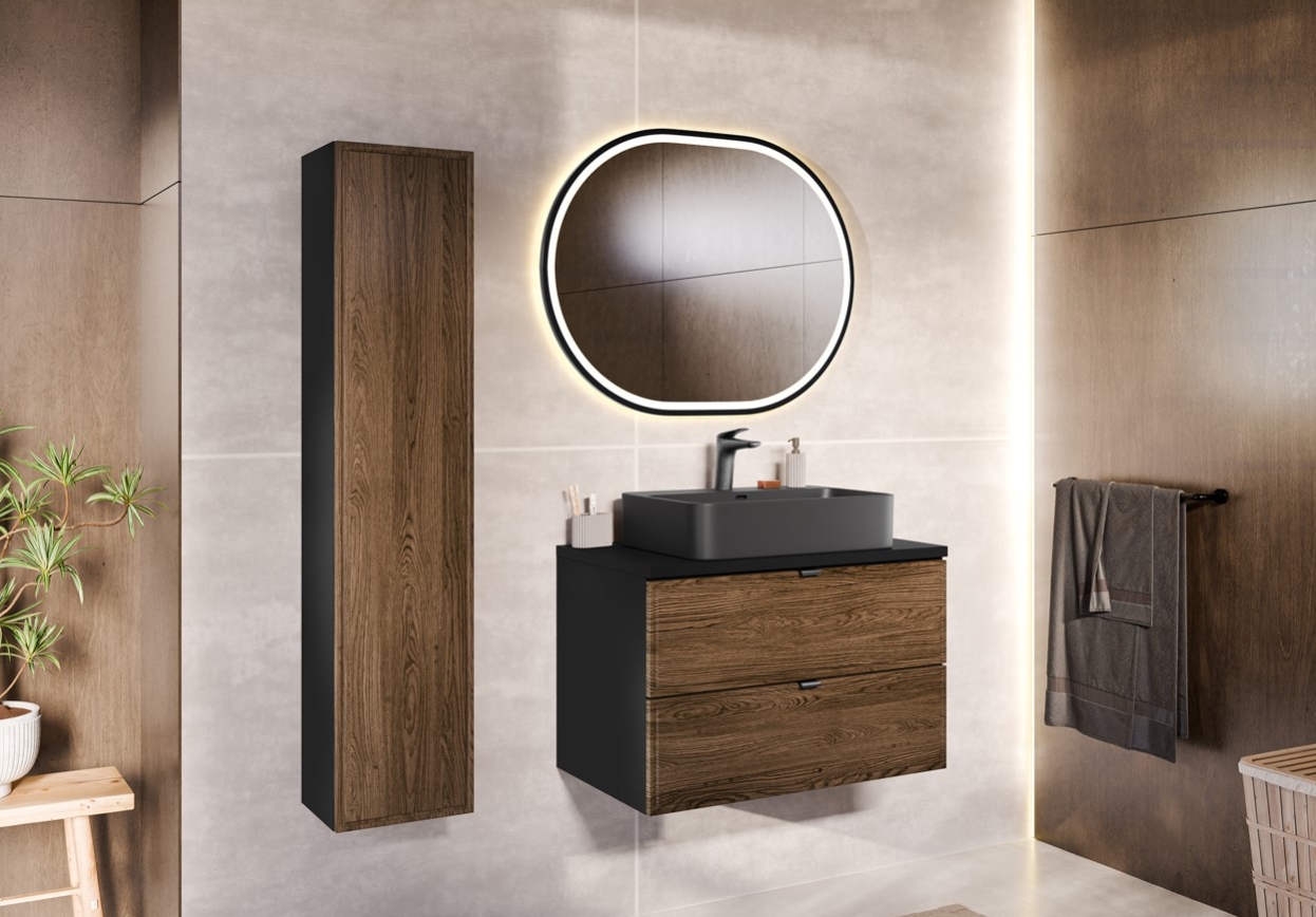 Objevte koupelnový nábytek, který v sobě spojuje nadčasovou eleganci a současný styl. Kolekce Talia Casella vyniká jedinečným designem, ve kterém dominuje dekor Dub Casella věrně odrážející krásu přírodního dřeva. Kombinace se sytě matnou černou barvou korpusů dodává nábytku moderní a sofistikovaný vzhled. Kolekci charakterizují jemně frézovaná čela, která zdůrazňují její exkluzivní charakter. Navíc skříňky pod umyvadlo nabízí možnost personalizace díky třem různým barvám úchytek – zlatý lesk, chrom lesk a černá matná, což umožňuje dokonalé přizpůsobení individuálním preferencím.