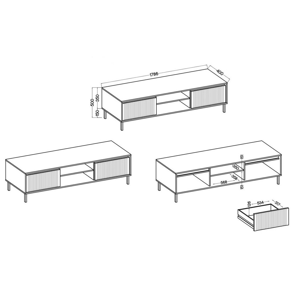 TV stolek KASOA 2S/312 | dub evoke vyniká minimalistickou formou obohacenou o precizně frézované detaily , které do interiéru přinášejí zcela nový rozměr japonské estetiky. Barevná paleta je laděna do jemných, zemitých tónů , jako je dub evoke, doplněná o černé akcenty, které elegantně kontrastují se světlými odstíny. Jednoduché černé kovové nohy dodávají nábytku lehkost a vizuální vzdušnost, aniž by působil těžkopádně. TV stolek má dvě prostorné zásuvky a jednu otevřenou polici. Také má stolek praktický otvor pro kabely.