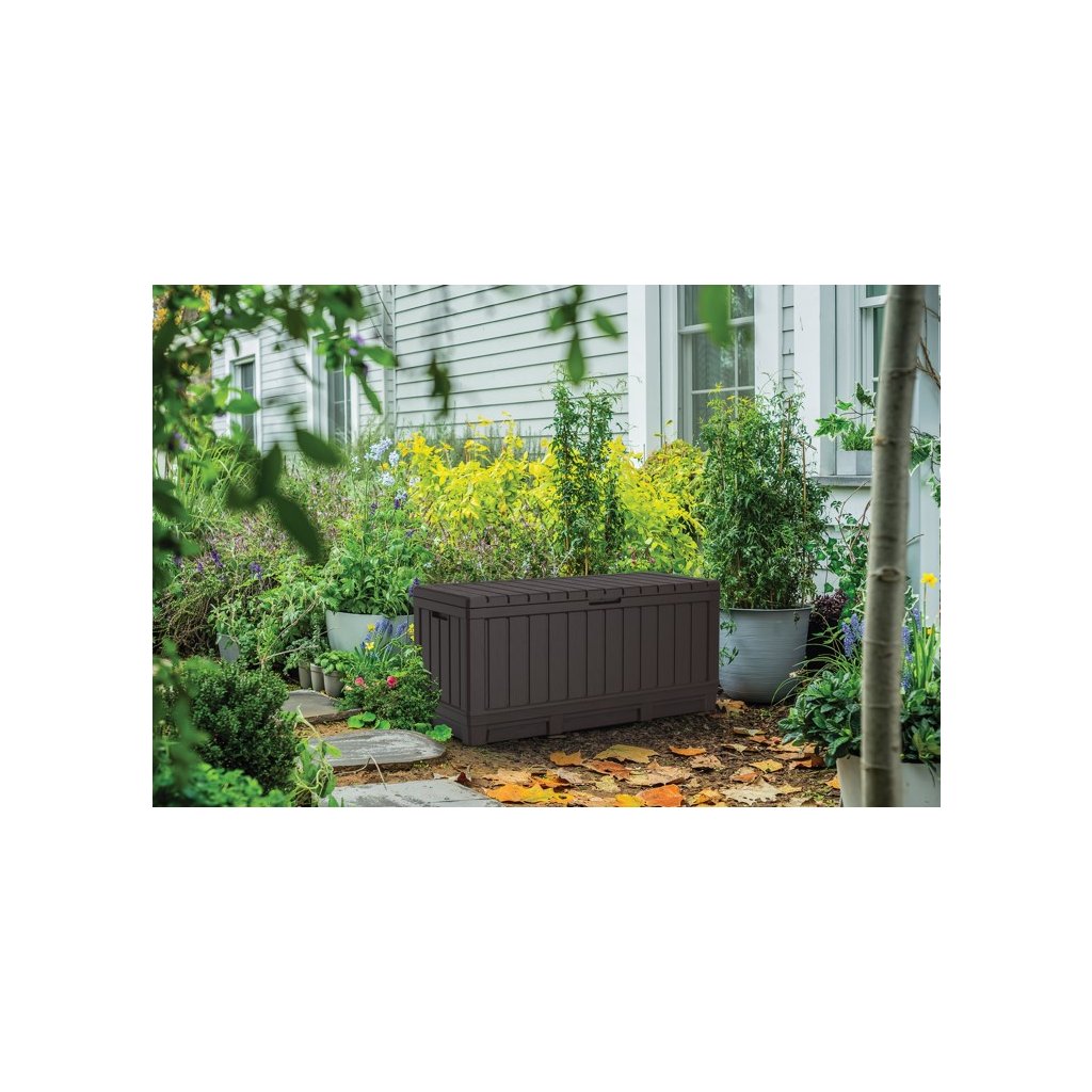 Úložný box KENTGROVE | hnědá 350L e vyroben z vysoce kvalitního a odolného plastu , který zajišťuje ochranu proti poškrábání a zaručuje dlouhou životnost . Jejich vnitřní a vnější stěny umožňují snadnou údržbu a čištění , čímž šetří čas i náklady spojené s údržbou.