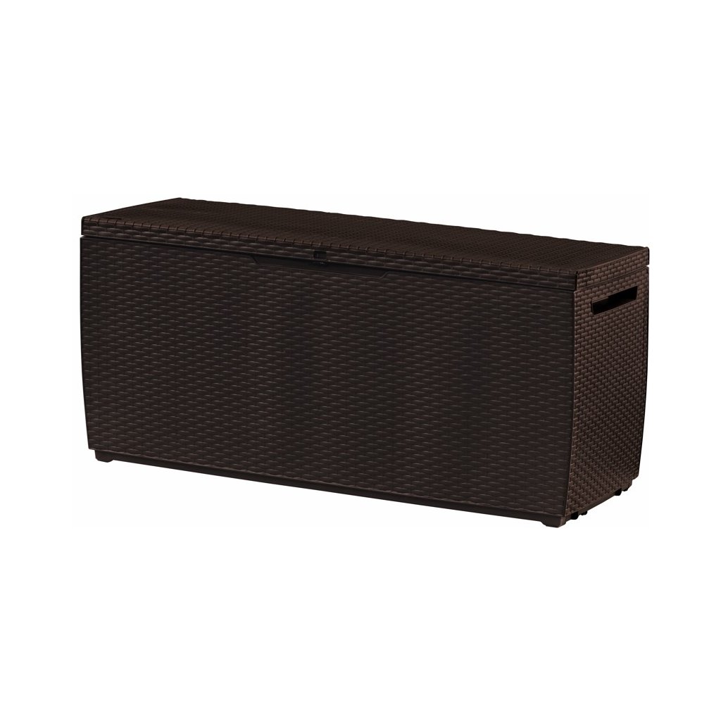 Praktrický plastový box MARINA s úložným prostorem v hnědé barvě umožňuje pohodlně uložit vše co chcete mít po ruce na vaší zahradě. Vyznačuje se obsahem 305l , díky čemuž se do něj vejde například - zahradní nářadí, polštáře nebo přikrývky. Výhodou tohoto boxu je snadná montáž bez využití nářadí a moderní provedení. Úložný box lze díky nosnosti 220kg využít jako lavičku.