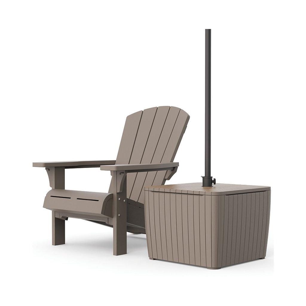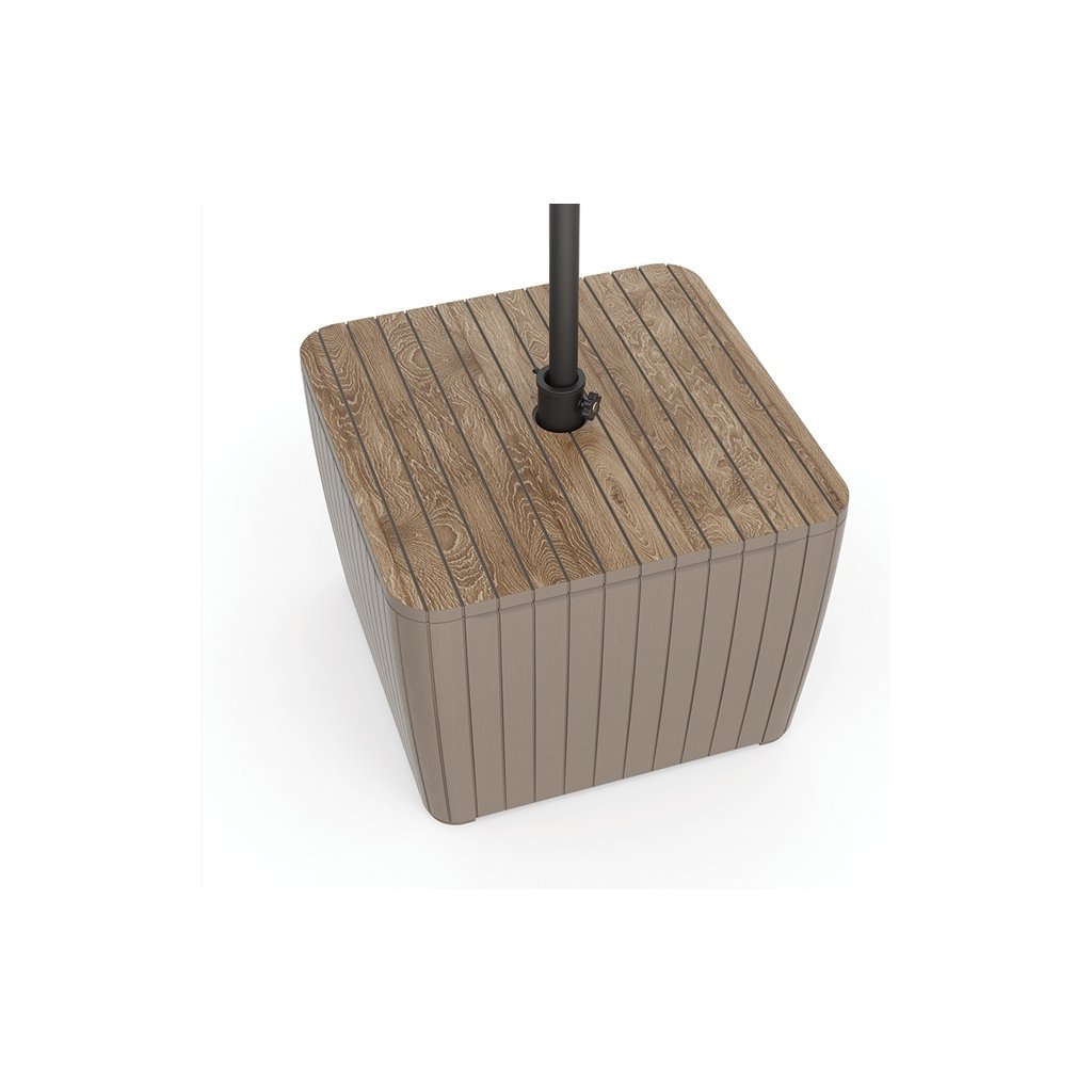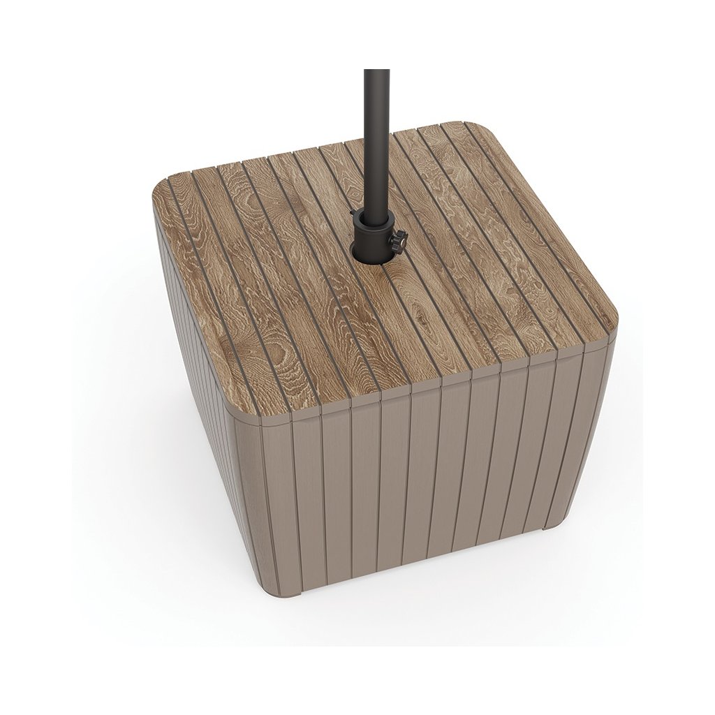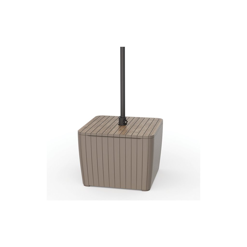Objevte úložný box ZION DECO, který je všestranný kus nábytku, který spojuje pohodlí a odolnost . Zahradní box je vybaven praktickým držákem na slunečník o průměru až 3 metry a 40-litrovou nádrží na vodu, která zajišťuje jeho stabilitu . Montáž trvá jen 5 minut a díky lehké konstrukci a ekologickému balení je jeho přeprava a skladování velmi jednoduché. Povrchová úprava zvýrazňuje přirozený vzhled a chrání jej proti poškození. Box je ideální pro váš venkovní prostor, odolný vůči UV záření a povětrnostním vlivům, zároveň vyrobený ze 70% recyklovaných materiálů.