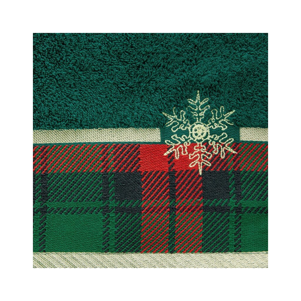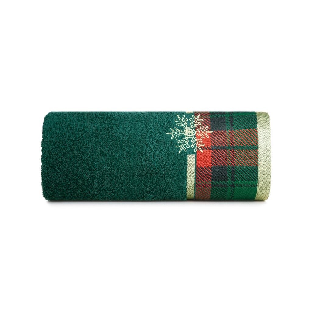 Vánoční osuška s žakárovým lemem a zlatou nití šířka: 70 cm, délka: 140 cm, barva: lahvově zelená, hmotnost: 480 GSM, složení: Materiál: 100% bavlna: ozdobná část: Materiál: 50% bavlna, 50% polyester