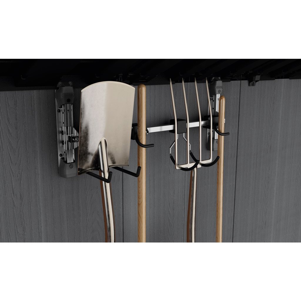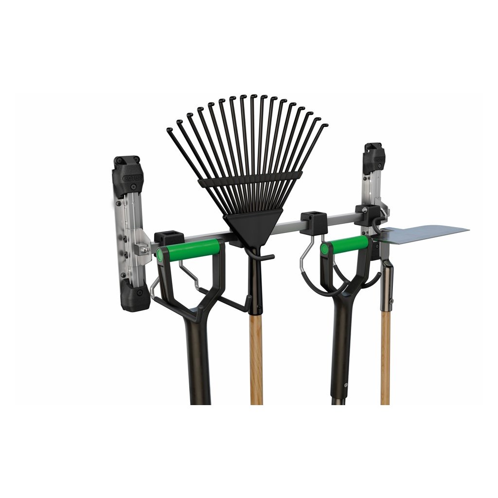 Víceúčelový nástěnný věšák je navržen tak, aby zajistil pohodlné a bezpečné uložení zahradního nářadí. Představuje skvělý způsob pro uložení nářadí na zeď. Díky nastavitelné poloze háčku si snadno zorganizujete svůj úložný prostor.
