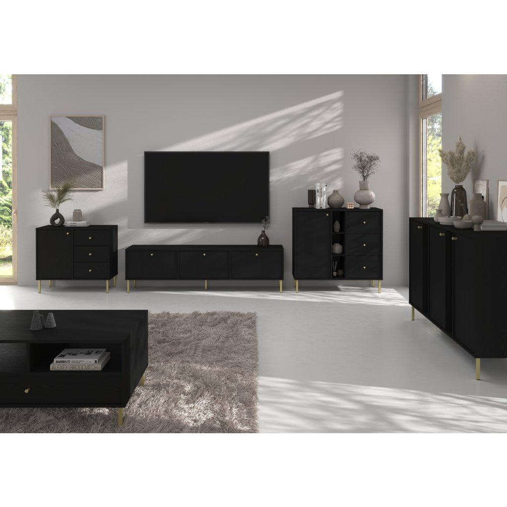 Krásné zlaté kovové úchyty, dokonalé linie, atraktivní a moderní design, to a mnohem víc je typickým znakem vitríny YEDDO 2F/černá. Vitrína stojí na vysokých zlatých kovových nožičkách, které umožňují robotickým vysavačům dostat se do každého koutu. Vitrína je také vyrobena z kvalitního a odolného materiálu s ABS hranami, díky čemuž je dokonalou volbou do každé domácnosti. Ke vitríně v případě zájmu lze doobjednat i LED osvětlení.