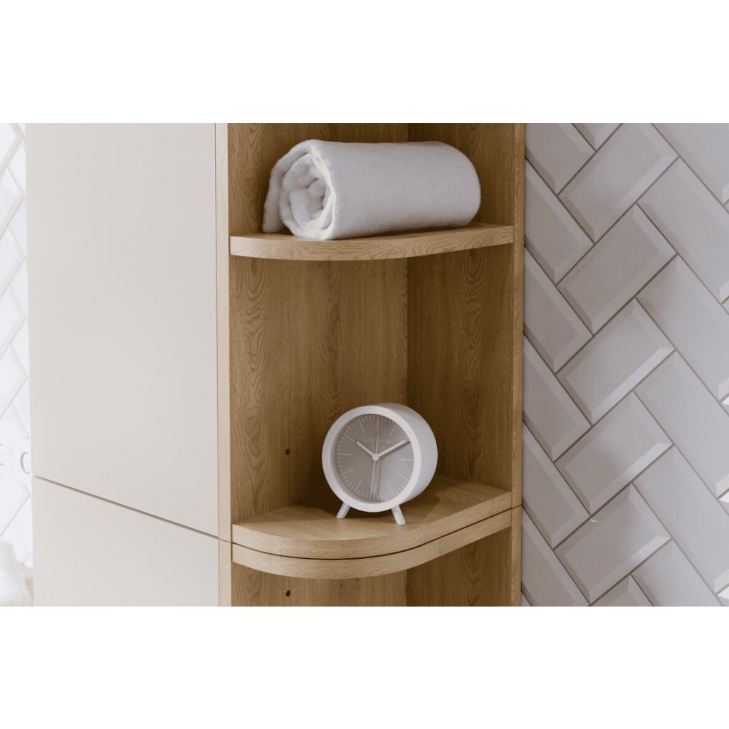 Laminované desky o tloušťce 16 mm jsou navrženy tak, aby vydržely vlhké prostředí koupelny a zároveň poskytovaly pevný a stabilní povrch. Jsou vhodné nejen pro podlahy, ale také jako obklad pro stěny nebo jako součást koupelnového nábytku. Díky své odolnosti vůči vlhkosti a snadné údržbě jsou laminované desky ideálním řešením pro koupelnové prostředí. Stačí je pravidelně utírat vlhkým hadříkem a občas použít mírné čistící prostředky k udržení lesku a čistoty. Otevírání je zajištěno systémem PUSH TO OPEN.