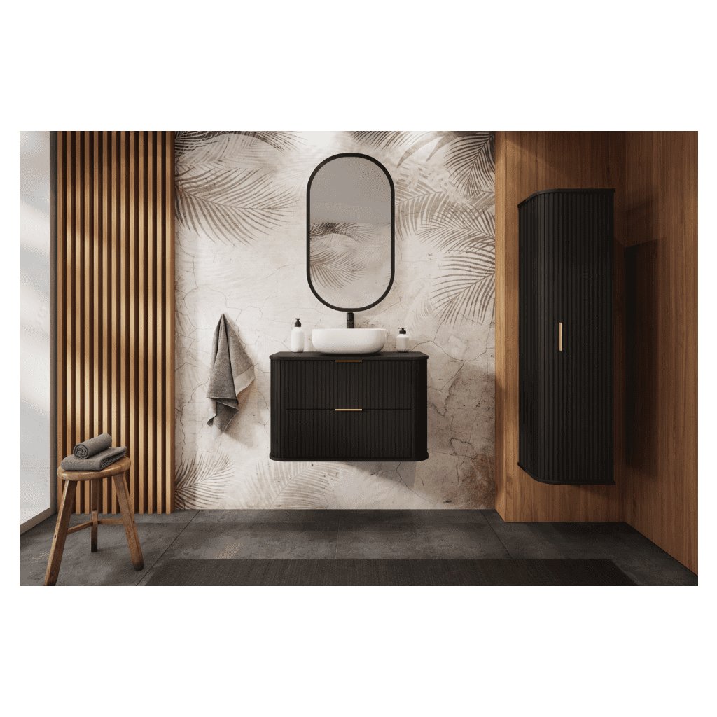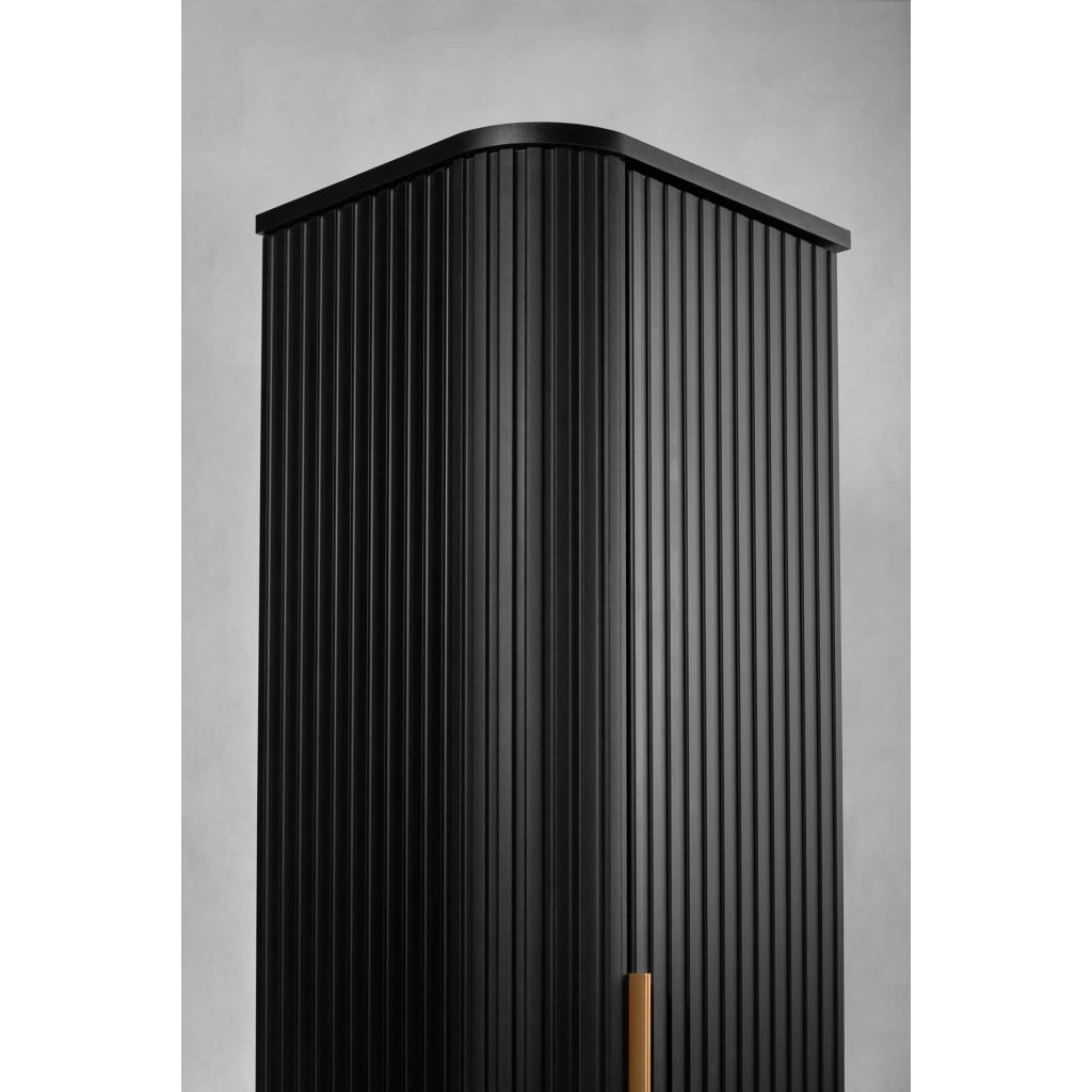 Potřebujete v koupelně více úložného prostoru, ale nechcete ji zahltit? Vysoká koupelnová skříňka ELEGANCE v elegantní černé barvě je ideální řešení. Díky úzkému, vertikálnímu tvaru nabízí spoustu místa pro uložení věcí, přičemž zabere minimum prostoru – skvělá volba do menších koupelen i do rodinných koupelen, kde je úložný prostor klíčový. Design zaujme na první pohled: vertikální drážkované čelo působí prémiově a moderně, zatímco jemný zlatý úchyt dodá celé skříňce luxusní detail. Černé provedení je nadčasové, lehce kombinovatelné a krásně ladí s bílou sanitou, dřevodekorem i černými či zlatými doplňky. Uvnitř naleznete prakticky řešený prostor na ručníky, kosmetiku, zásoby, čistící prostředky nebo doplňky – vše bude přehledně uloženo a koupelna zůstane vizuálně čistá.