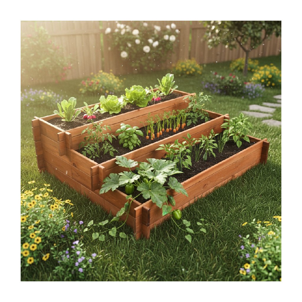 Dřevěný vyvýšený záhon ZAHRADKA kaskáda je vhodný pro úhledné pěstování okrasných květin, zeleniny či bylinek. Součástí balení je také textilie, která Vám usnadní péči a zvýší ochranu rostlin i vyvýšeného záhonu.