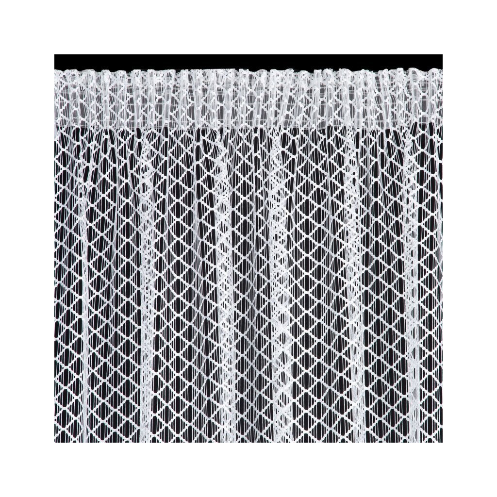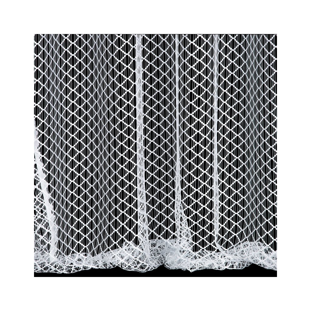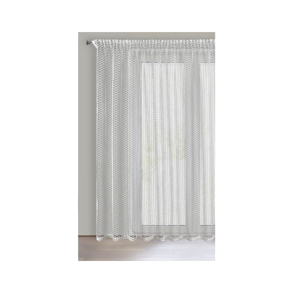 Moderní záclona z nepravidelné síťoviny s jemným leskem a různými velikostmi ok. Ideální také jako dekorační záclona. Záclona AIDEN kombinuje jednoduchost geometrických tvarů s kouzlem retro stylu. Její volná, pravidelná mřížková struktura umožňuje pronikání přirozeného světla do interiéru, čímž vytváří elegantní a moderní vzhled. Tato záclona dodává místnosti originalitu a vytváří unikátní atmosféru. Je ideální nejen pro moderní interiéry, ale skvěle se hodí i do retro, vintage či neoromantických aranžmá. Díky své ležérní formě a absenci zbytečných dekorací je snadné ji sladit se závěsy. Ozdobná páska všitá v horní části záclony zaručuje rovnoměrné řasení látky, což jí dodává bezvadný vzhled.