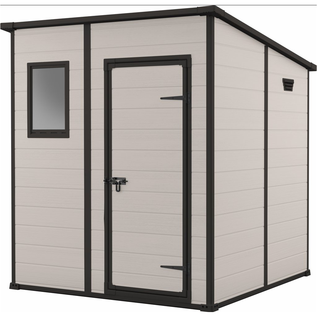 Jednoduchý bezúdržbový zahradní domek RAMON PENT 6x6 se skvěle hodí na každou zahradu, kde je zapotřebí ukládání nástrojů a příslušenství. Vestavěný ventilační panel zajišťuje stálý přívod vzduchu do interiéru a současně chrání před škodlivými účinky vlhkosti. Kovově vyztužený rám a možnost zamykání visacím zámkem, umožňuje uživatelům efektivně zajistit uložené předměty. Domečky Keter se vyznačují kvalitou, designem a extrémní stabilitou, součástí je vysoce odolná podlaha.