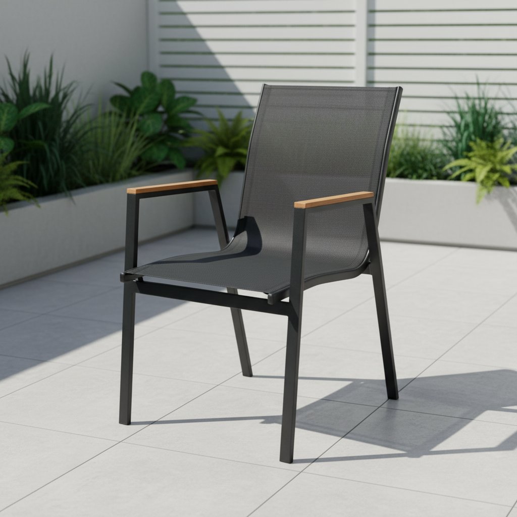 Lehká a pevná hliníková konstrukce je odolná vůči korozi. Ideální pro dlouhodobé používání v exteriéru. Sedací část a opěradlo jsou vyrobeny z kvalitní textilie , která je prodyšná, rychle schne a snadno se čistí. Materiál artwood na područkách dodává židli přírodní vzhled a zároveň poskytuje příjemný dotek při opření rukou.