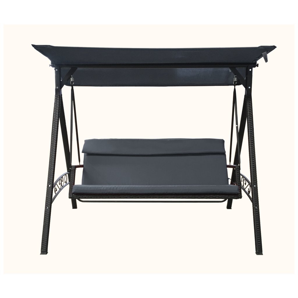 Zahradní houpačka RATTAN s kovovou konstrukcí a umělým ratanem je vhodná do každé zahrady. Součástí houpačky je také pohodlná poduška v šedé barvě. Umělý ratan vyniká svou odolností proti UV záření , je bezúdržbový a velmi lehký. Vyrábí se z polyethylenu, což zajišťuje větší pevnost , stálobarevnost a celkovou životnost materiálu. Houpačka je vhodná pro 3 osoby s maximální hmotností 270kg, není možnost rozložení na lůžko.