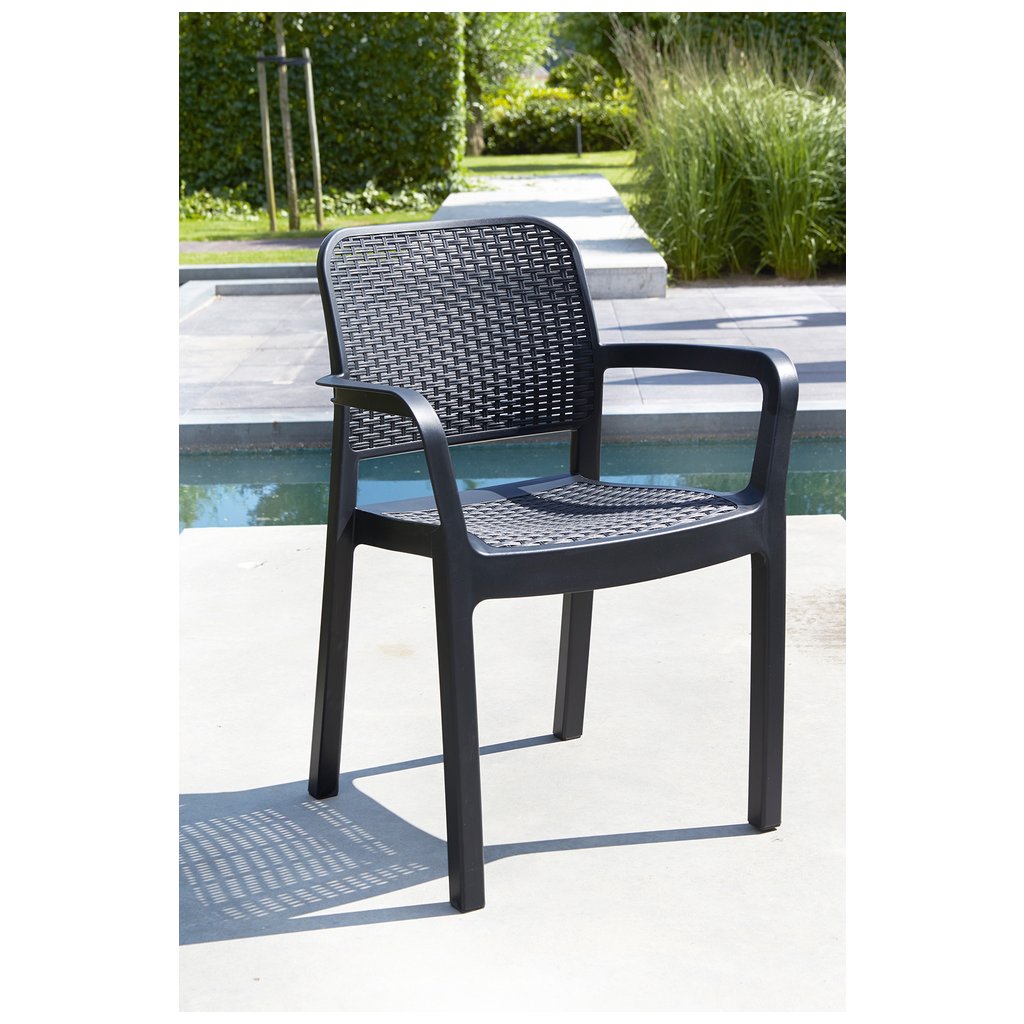 Zahradní křeslo SAMANTHA v barvě grafit kombinuje robustní konstrukci a klasickou eleganci. Tvarované opěradlo křesla SAMANTHA s ratanovou vazbou a stabilními opěrkami jsou maximálně pohodlné. Židle se vyznačuje vysokou stabilitou a odolností vůči poškození. Moderní provedení židle SAMANTHA si najde své místo v každé zahradě či na terase .