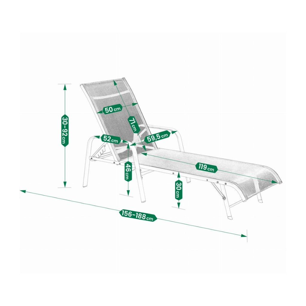 Konstrukce zahradního lehátka je vyrobena z pevné oceli s práškovou povrchovou úpravou, která zajišťuje odolnost vůči korozi a povětrnostním podmínkám . Sedací a opěrková část je z kvalitního textilenu , který je elastický, prodyšný a rychleschnoucí , čímž poskytuje vysoký komfort při používání.