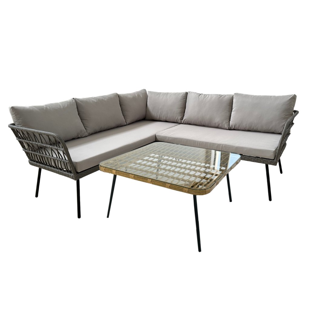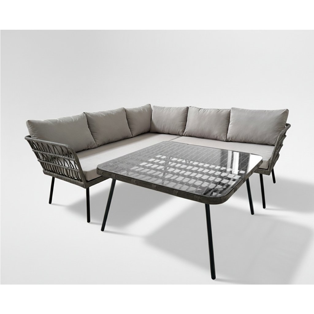 Stylová a pohodlná sestava zahradní sestava FLOTES je ideální do zahrady, na terasu, balkon nebo verandu. Součástí setu je rohová pohovka a praktický stolek se skleněnou deskou. Zahradní set má moderní šedé provedení, ratan je šedý a polštářky jsou také v šedé barvě, díky čemuž se jednoduše hodí do různých exteriérů i interiérů. Tato elegantní rohová sestava je vhodná jako hlavní relaxační zóna v zahradě , místo pro setkání na terase, pohodlné sezení na větším balkoně nebo stylový doplněk na verandu. Skleněný stolek je ideální pro odkládání kávy, nápojů nebo občerstvení. Pohodlná sedadla s hrubými poduškami zajišťují komfort i během dlouhého sezení . Sestava je vhodná pro čtení knihy, práci s notebookem na čerstvém vzduchu, setkání s rodinou a přáteli nebo večerní relax .