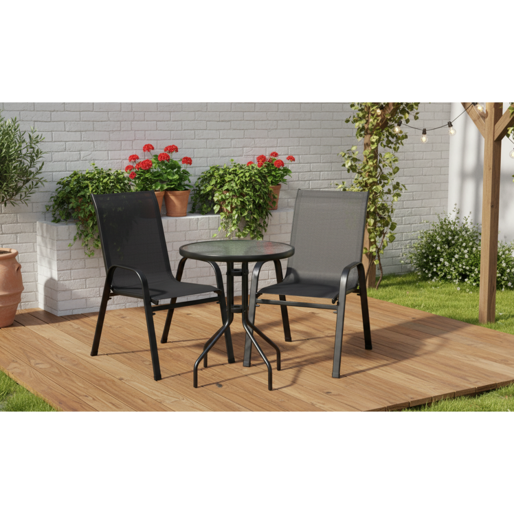 Zahradní set FLOT v černé barvě je ideální pro ty, kteří hledají spojení klasiky a elegance. Jednoduchý tvar a stylové pletení zaujme každého a hodí se do různých prostor jako na balkon, terasu nebo do zahrady. Souprava spojuje stylový vzhled, vysokou odolnost a maximální pohodlí při každodenním používání. Zahradní set je vhodný nejen do domácích exteriérů, ale také do restaurací, hotelů či oddechových zón pro hosty. Židle jsou stohovatelné.