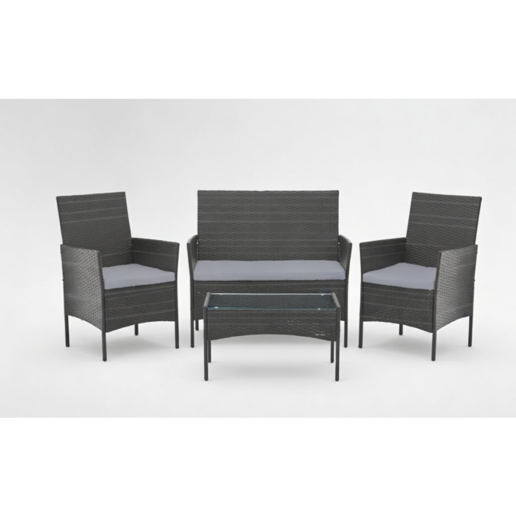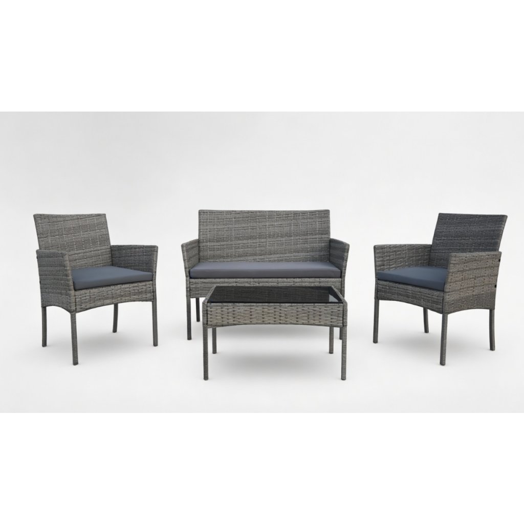 Elegantní a klasický set zahradního nábytku LORELO je vyroben v šedém barevném provedení. Poskytuje výjimečný komfort při sezení a je ideální pro terasy, zahrady nebo altány. Funkční stolek s deskou z tvrzeného skla doplňuje praktičnost setu, zatímco design zůstává nadčasový a stylový. Zahradní set je vhodný nejen do domácích exteriérů, ale také do restaurací, hotelů či oddechových zón pro hosty.