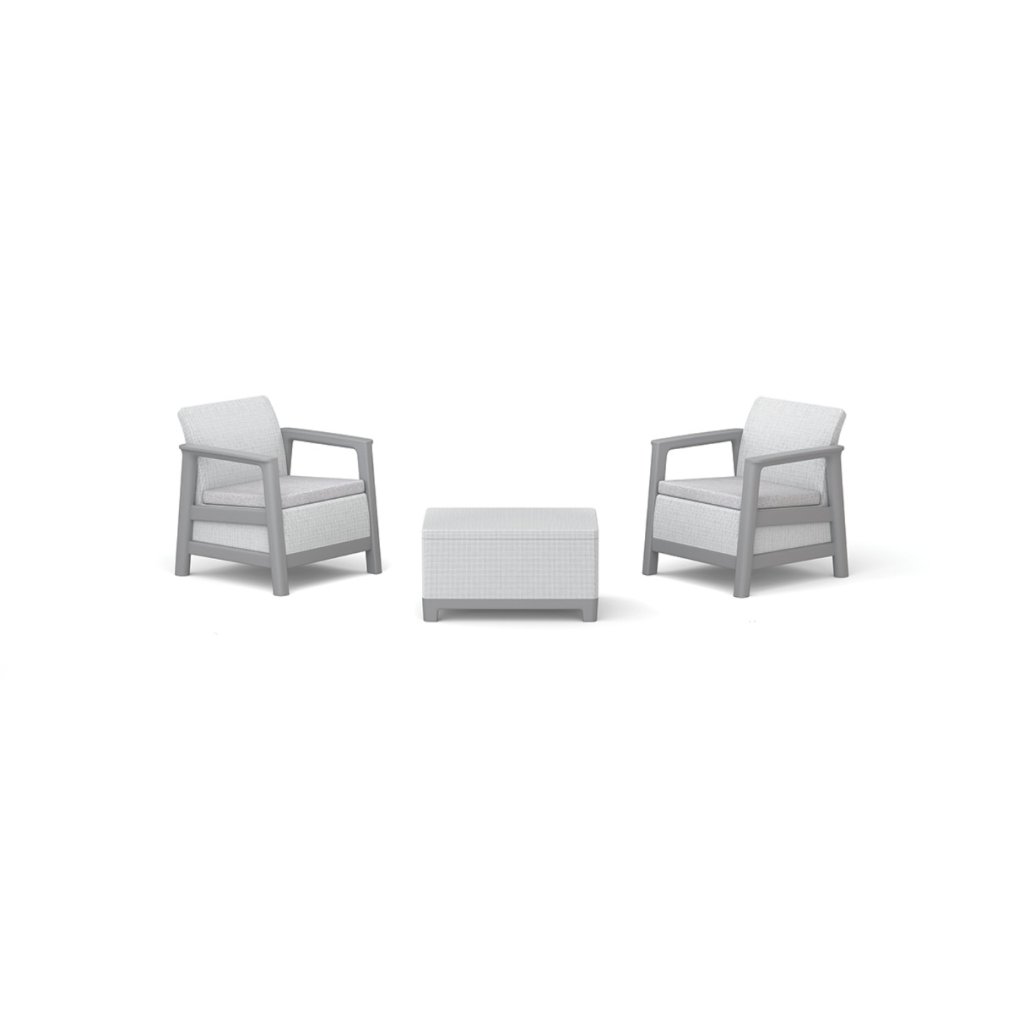 Zahradní set je vyrobena z kvalitního lisovaného plastu , který je určen pro dlouhodobé venkovní používání. Materiál je odolný vůči vlhkosti , dešti i UV záření, díky čemuž si zachovává svůj tvar, pevnost a barevnou stálost bez potřeby náročné údržby. Montáž je rychlá a snadná bez potřeby nářadí, takže sada je připravena k použití již během několika minut.