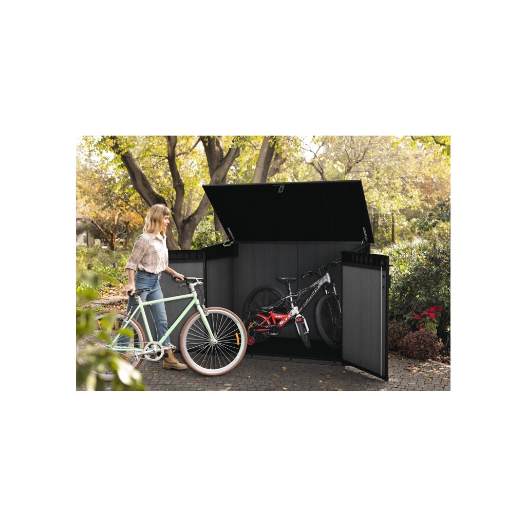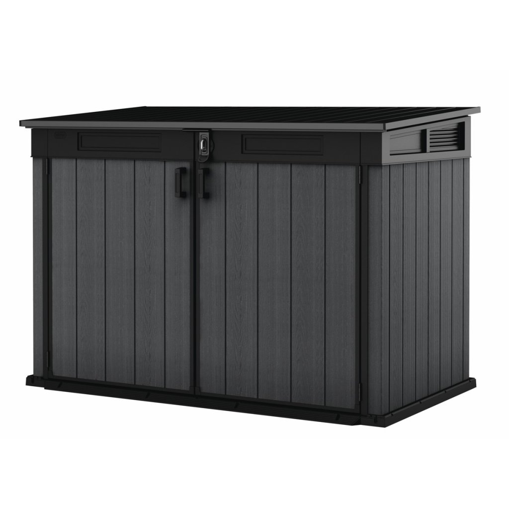Bezúdržbová zahradní skříňka AMPEZZO MEGA je ideální nejen pro uschování nářadí a zahradních doplňků, ale také pro sekačku nebo grill. Skříňka je v novém designu s úložným místem.