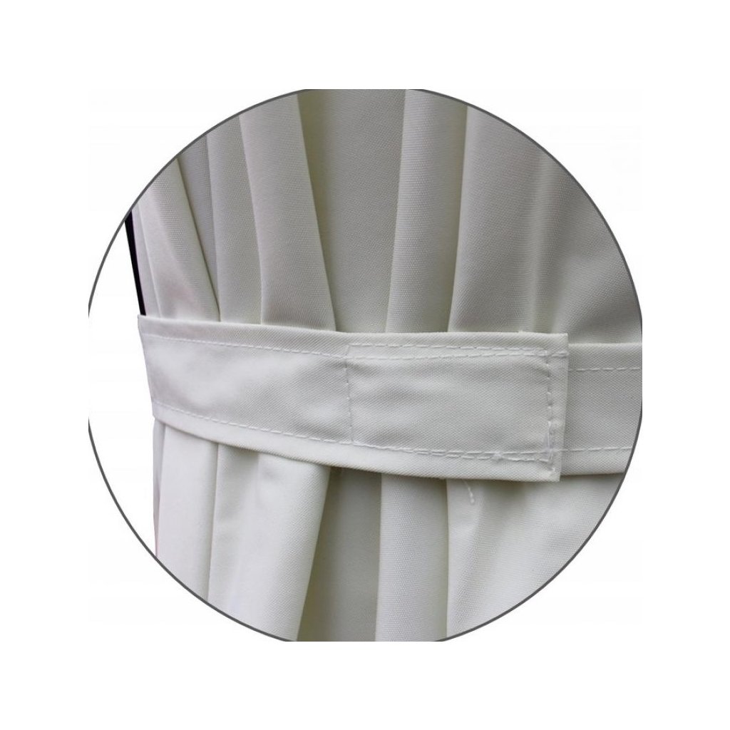 Stojící profil je vyroben z kvalitního hliníku s povrchovou úpravou práškovým lakováním . Zavěšený profil také sestává z hliníku a je ošetřen stejnou práškovou barvou, která zaručuje odolnost a estetický vzhled . Stabilitu zajišťuje podstavec s křížovou základnou z robustní oceli, která poskytuje spolehlivou oporu. Stříška je z voděodolného materiálu poskytuje spolehlivou ochranu před nepřízní počasí. Jednoduché skládání a rozkládání umožňuje praktická klika.