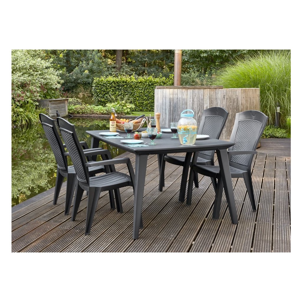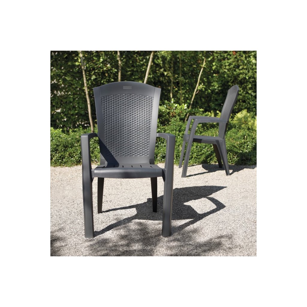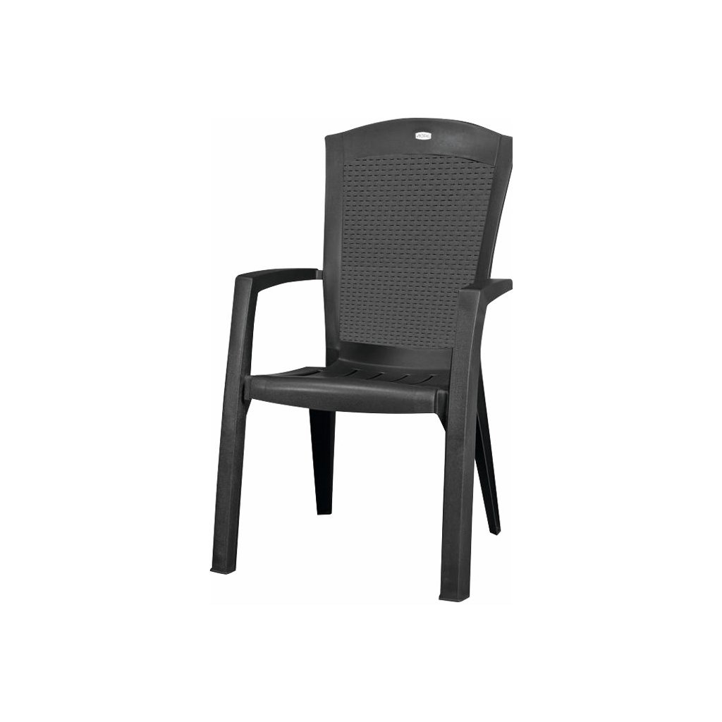 Moderní zahradní židle METASSA v barvě grafit má pohodlné sezení s vysokou opěrkou . Zahradní židle je stohovatelná pro jednodušší uskladnění. Zahradní židle je vyrobena z kvalitního materiálu , který se snadno čistí. Pořiďte si židli a vychutnejte si komfortní sezení na zahradě .