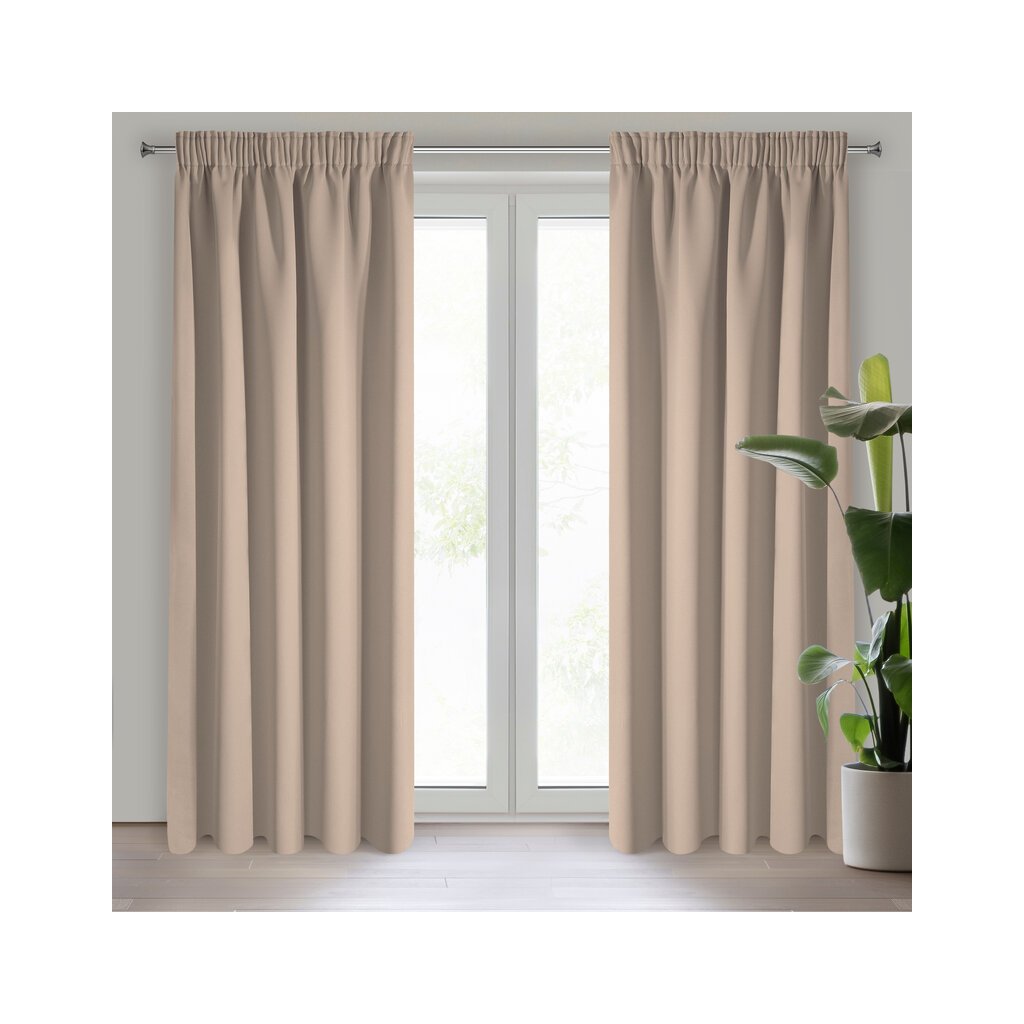 Elegantní jednobarevný závěs z vysoce zatemňující tkaniny. Růžová, matná tkanina bez dekoru je univerzálním prvkem interiérového designu. Šířka: 135 cm, délka: 270 cm, barva: béžová, hmotnost: 210 GSM, složení: Materiál: 100% polyester.