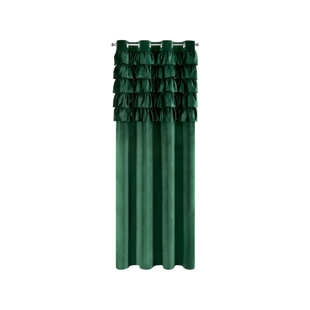 Hotový sametový závěs s volány z horní strany šířka: 140 cm, délka: 250 cm, barva: tmavě zelená, hmotnost: 200 GSM, složení: Materiál: 100% polyester