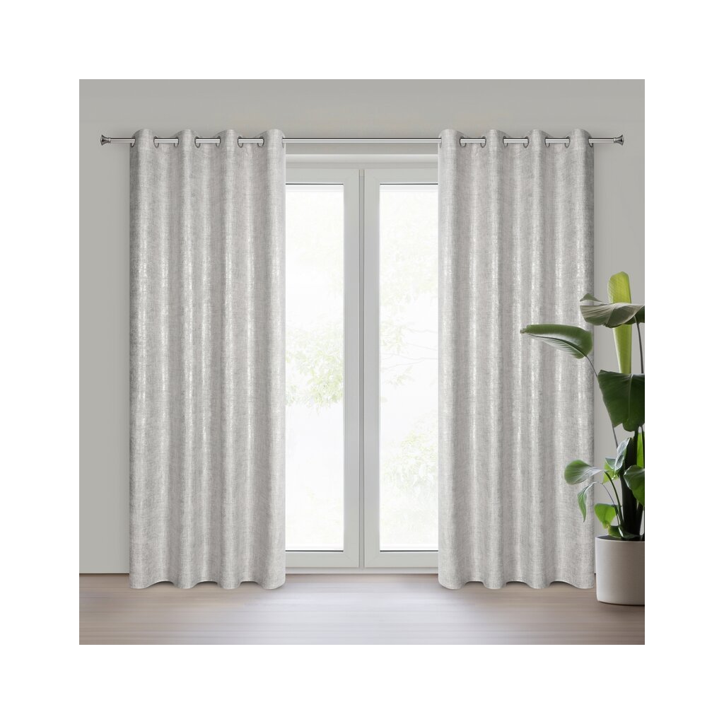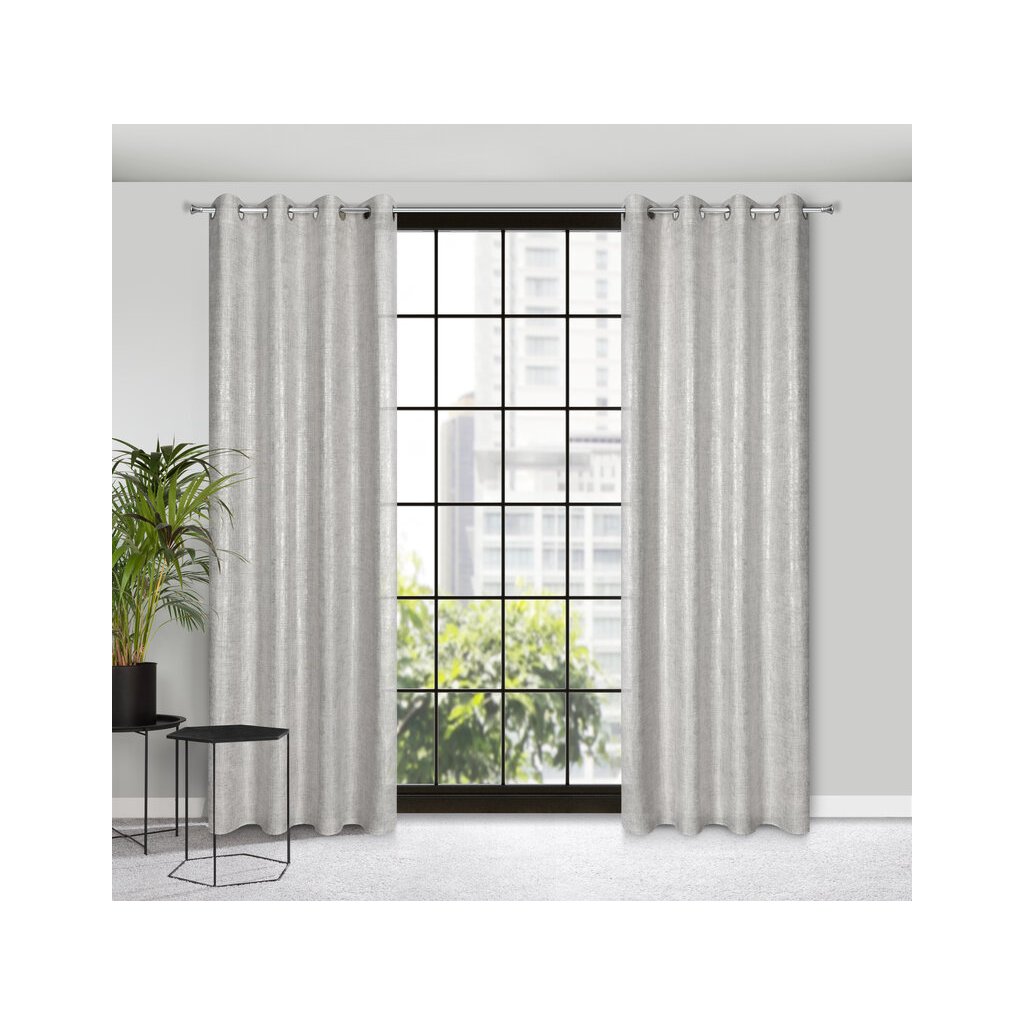 Závěs v eko stylu s lesklým potiskem šířka: 140 cm, délka: 250 cm, barva: stříbrná, hmotnost: 160 GSM, složení: Materiál: 100% polyester