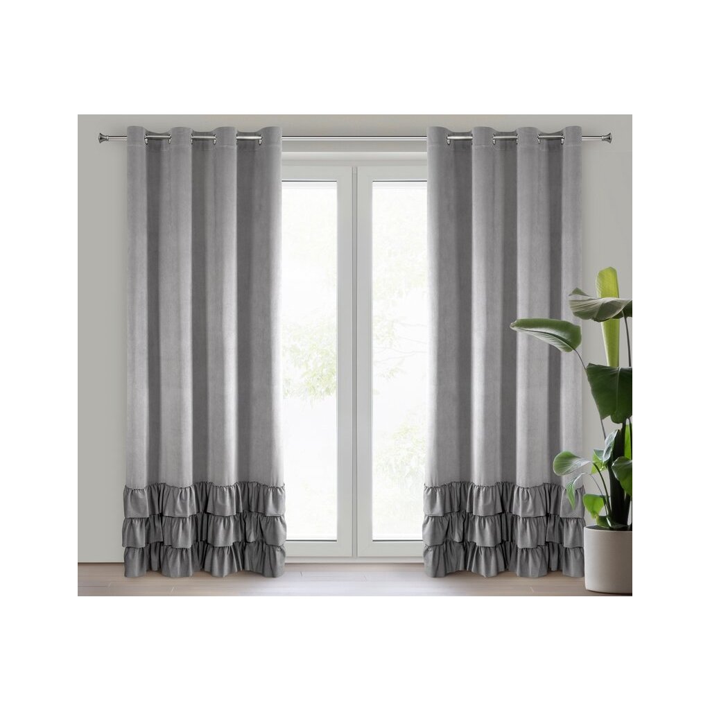 Závěs ze sametové tkaniny zdobený v dolní části 3 volány šířka: 140 cm, délka: 250 cm, barva: ocelová, složení: Materiál: 100% polyester
