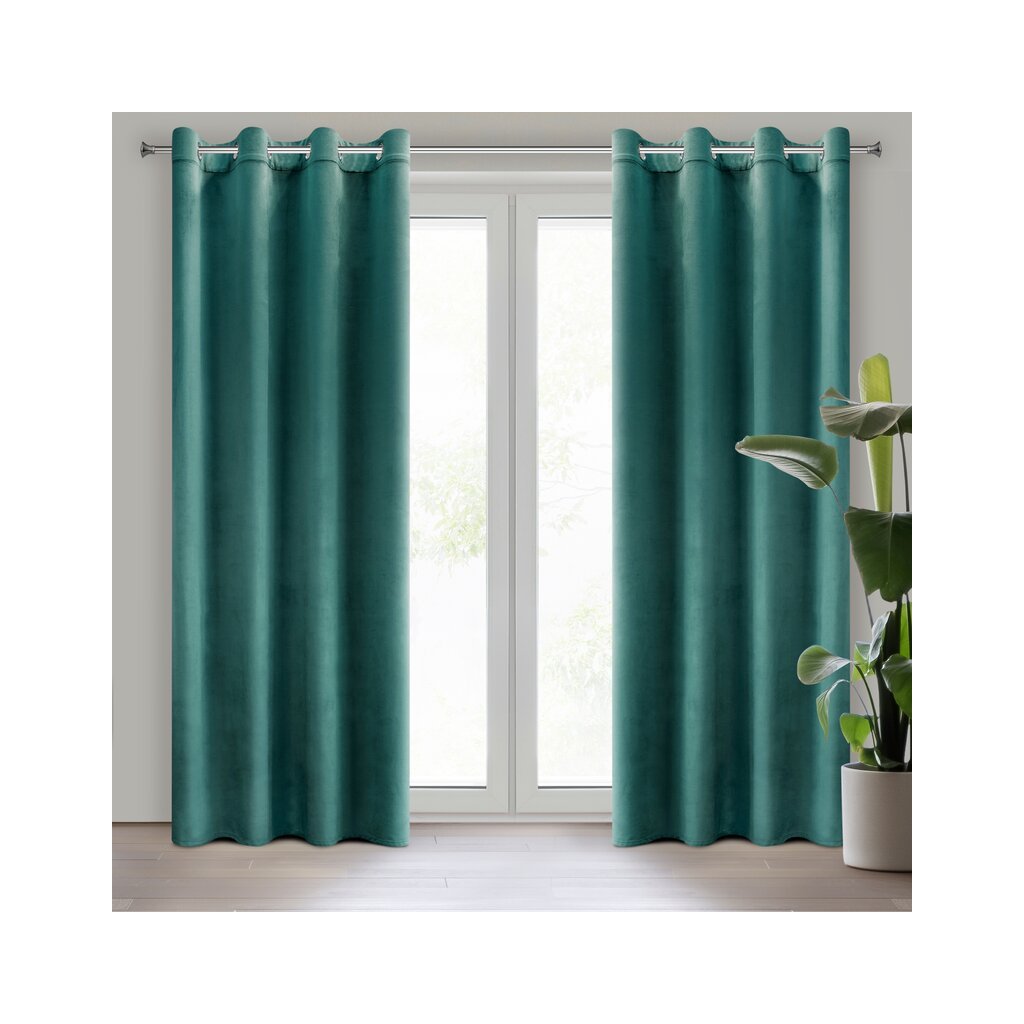 Jednobarevná sametová záclona šířka: 140 cm, délka: 250 cm, barva: tmavá tyrkysová, hmotnost: 200 GSM, složení: Materiál: 100% polyester