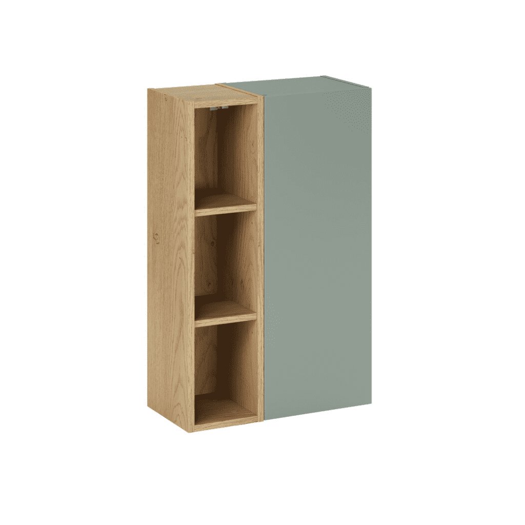 Hledáte způsob, jak efektivně využít i úzké místo v koupelně? Úzká závěsná skříňka ASTER Green 20×80 s otevřenými policemi je ideálním doplňkem k sestavě koupelnového nábytku, který nabízí praktický úložný prostor , aniž by působil těžkopádně. Kombinace zeleného korpusu a přírodního dřevodekoru vytváří moderní a příjemný kontrast. Otevřené police jsou ideální pro uložení kosmetiky, ručníků, dekorací či každodenních drobností, které chcete mít vždy po ruce. Díky štíhlému provedení o šířce pouhých 50 cm se skříňka hodí i do menších koupelen, mezi skříňku pod umyvadlo a vysokou skříňku nebo jako samostatný designový prvek.