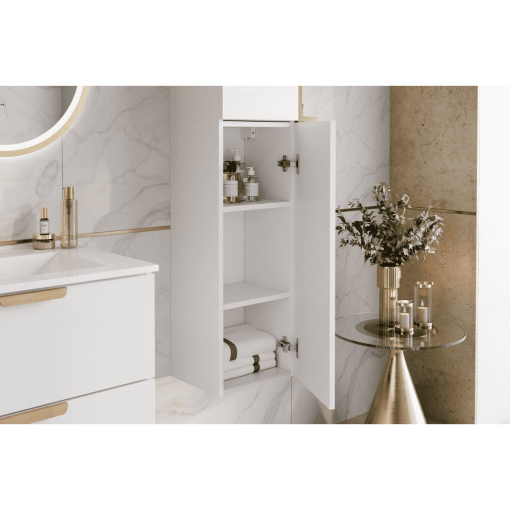 Doplňte svoji koupelnu o praktický a designově čistý prvek. Závěsná skříňka ASTER White 80-30-1D v neutrálním bílém odstínu přináší ideální kombinaci estetiky, úložného prostoru a úspory místa. Díky vertikálnímu provedení je skříňka ideální i do menších koupelen, kde je důležité efektivně využít každý centimetr. Jednodveřové provedení nabízí dostatek prostoru pro uložení ručníků, kosmetiky či čistících prostředků, přičemž vše zůstává přehledně uspořádáno a skryto před zrakem. Minimalistické linie a PUSH TO OPEN otevírání podtrhují moderní charakter nábytku. Povrchová úprava je navržena tak, aby odolávala vlhkosti a každodennímu používání v koupelnovém prostředí.