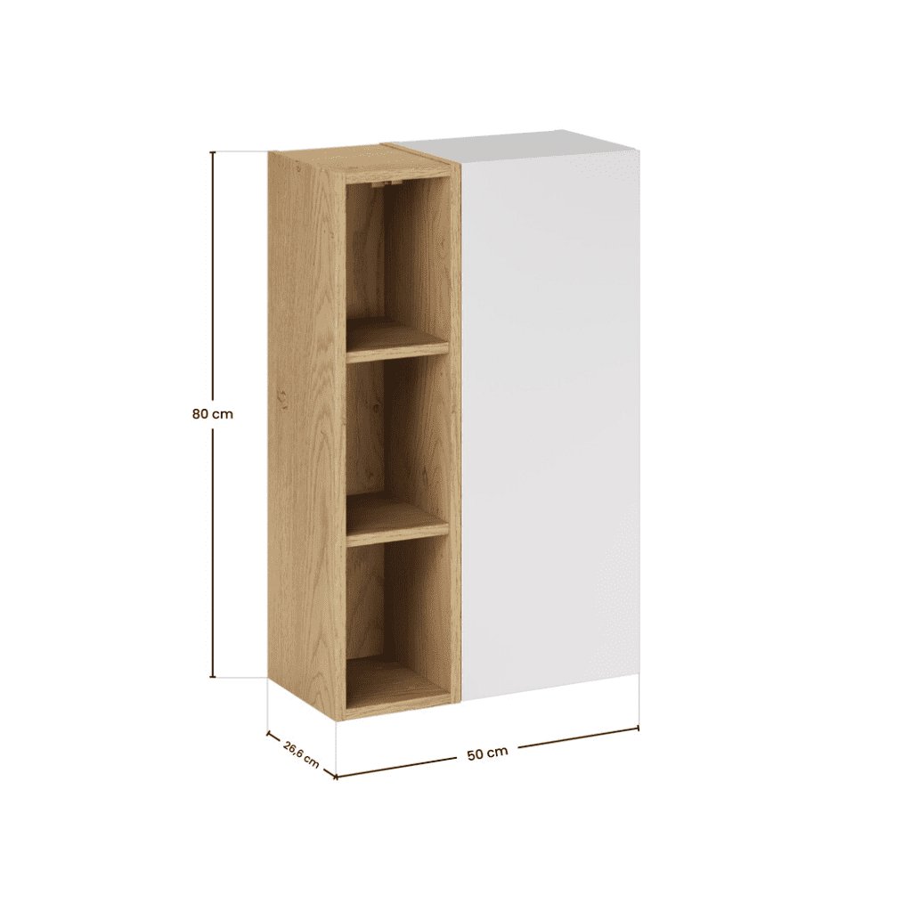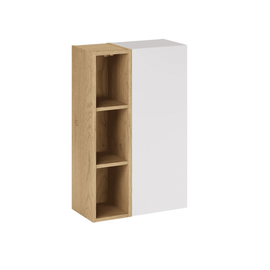 Hledáte způsob, jak efektivně využít i úzké místo v koupelně? Úzká závěsná skříňka ASTER White 20×80 s otevřenými policemi je ideálním doplňkem k sestavě koupelnového nábytku, který nabízí praktický úložný prostor , aniž by působil těžkopádně. Kombinace bílého korpusu a přírodního dřevodekoru vytváří moderní a příjemný kontrast. Otevřené police jsou ideální pro uložení kosmetiky, ručníků, dekorací či každodenních drobností, které chcete mít vždy po ruce. Díky štíhlému provedení o šířce pouhých 50 cm se skříňka hodí i do menších koupelen, mezi skříňku pod umyvadlo a vysokou skříňku nebo jako samostatný designový prvek.