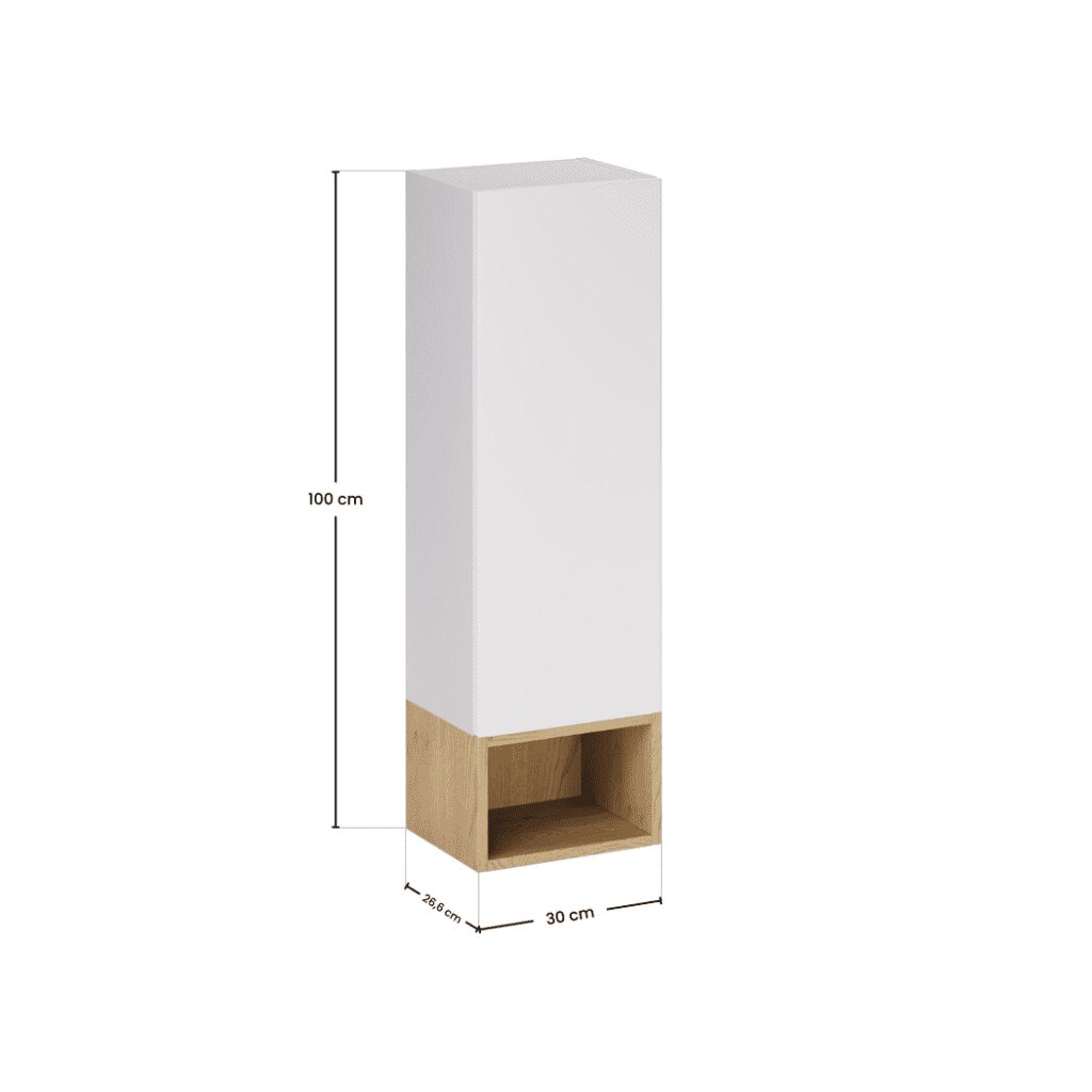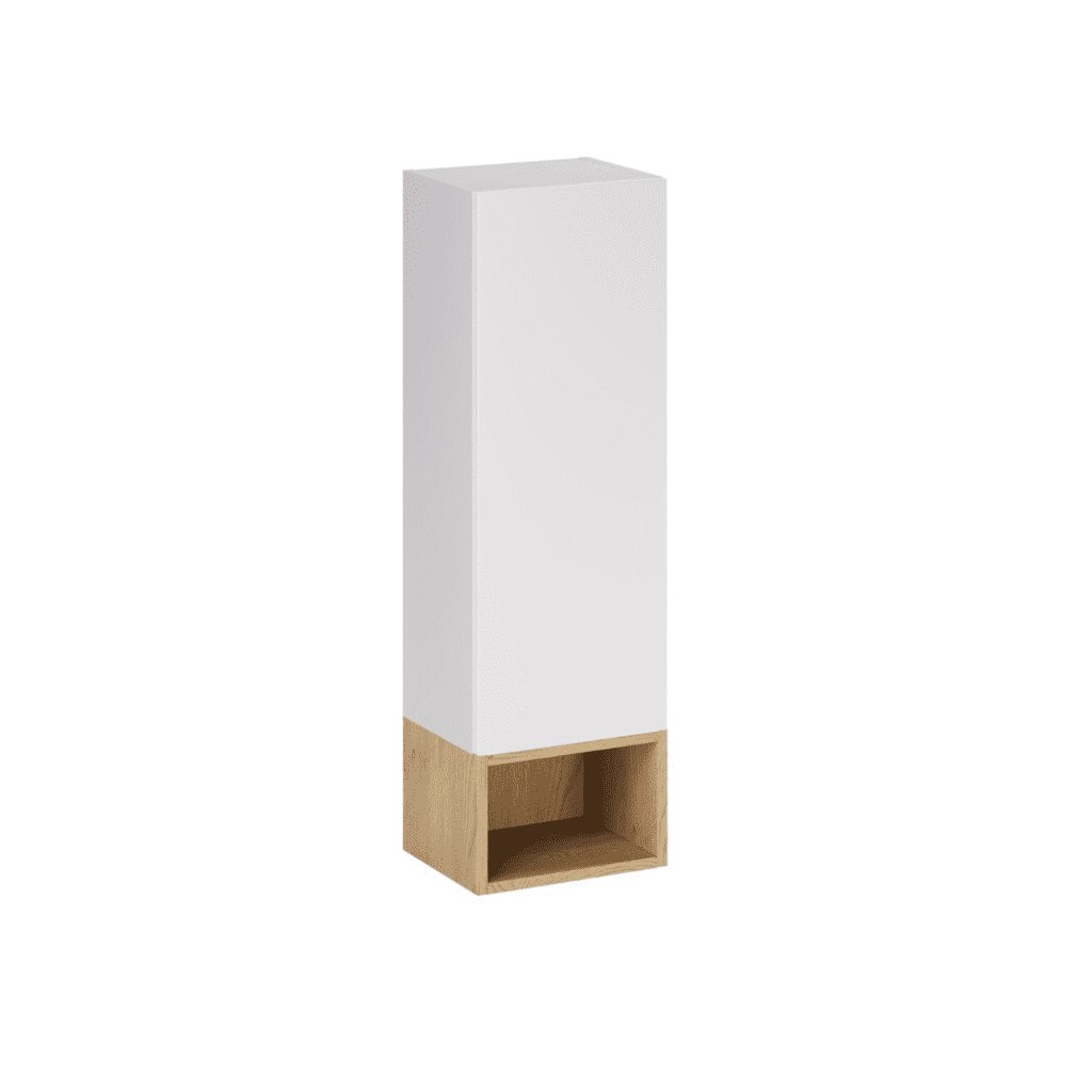Hledáte způsob, jak efektivně využít i úzké místo v koupelně? Úzká závěsná skříňka ASTER White 30x20cm s otevřenou policí je ideálním doplňkem k sestavě koupelnového nábytku, který nabízí praktický úložný prostor , aniž by působil těžkopádně. Kombinace bílého korpusu a přírodního dřevodekoru vytváří moderní a příjemný kontrast. Otevřené police jsou ideální pro uložení kosmetiky, ručníků, dekorací či každodenních drobností, které chcete mít vždy po ruce. Díky štíhlému provedení s šířkou pouhých 30 cm se skříňka hodí i do menších koupelen, mezi skříňku pod umyvadlo a vysokou skříňku nebo jako samostatný designový prvek.