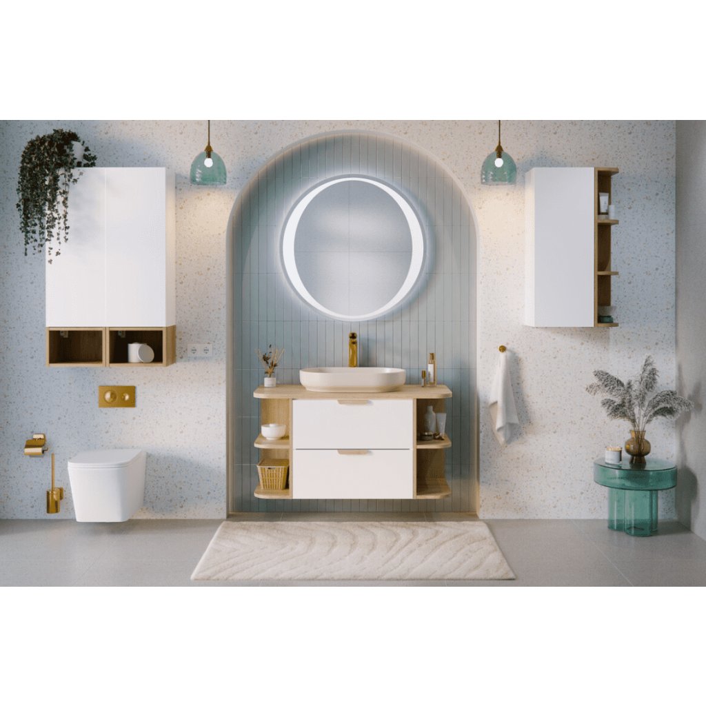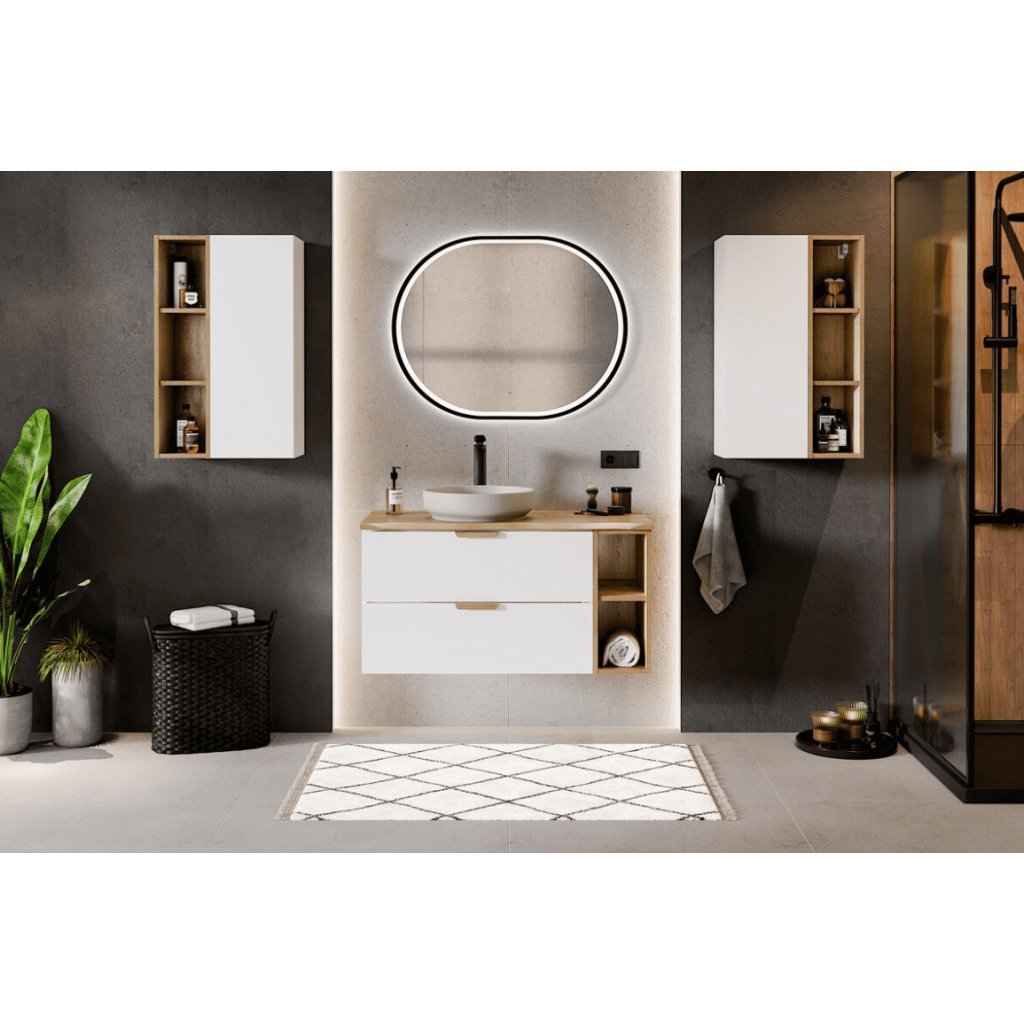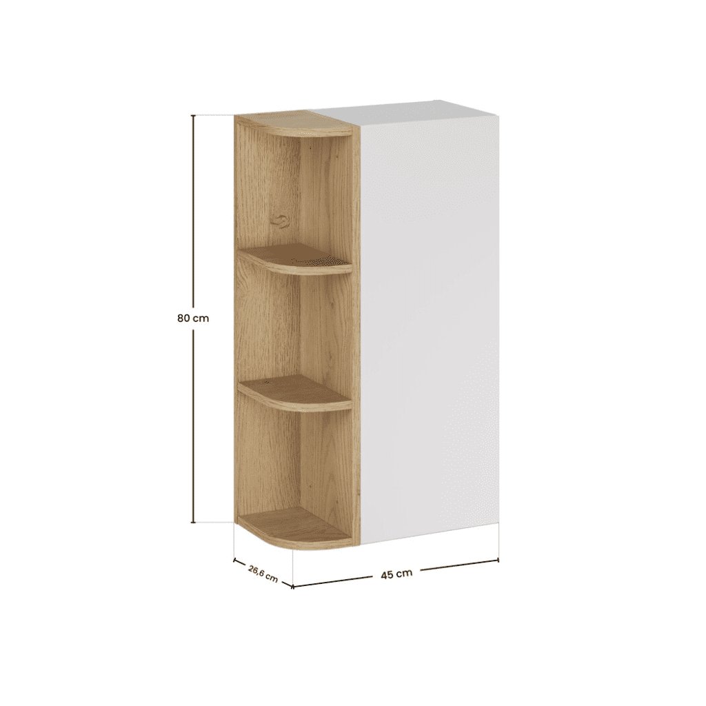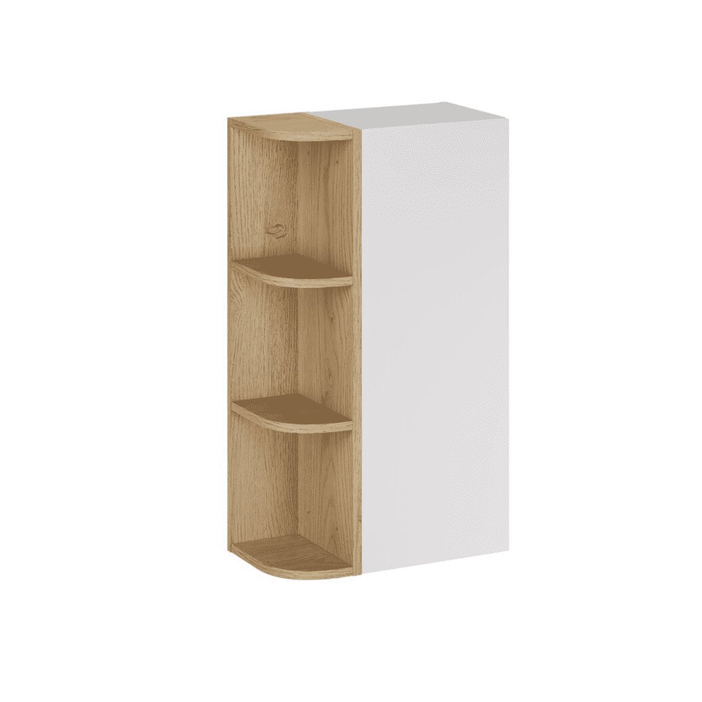 Využijte každý centimetr prostoru naplno. Rohová závěsná skříňka ASTER White s otevřenými policemi je ideálním řešením pro koupelny, kde je důležitá funkčnost, vzdušnost a moderní design. Kombinace bílé barvy a dekoru přírodního dřeva působí harmonicky a nadčasově. Otevřené rohové police umožňují rychlý přístup k nejpoužívanějším věcem – kosmetice, ručníkům či dekoracím – a zároveň opticky odlehčují celý prostor. Díky rohovému provedení je skříňka ideální do menších koupelen nebo jako doplněk ke skříňce pod umyvadlo a závěsným skříňkám ze série ASTER. Zaoblené hrany polic zvyšují bezpečnost i estetický dojem.