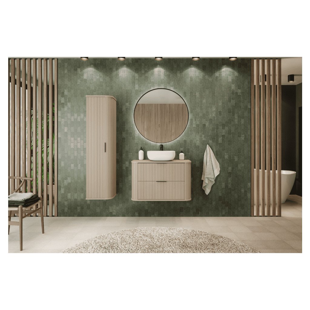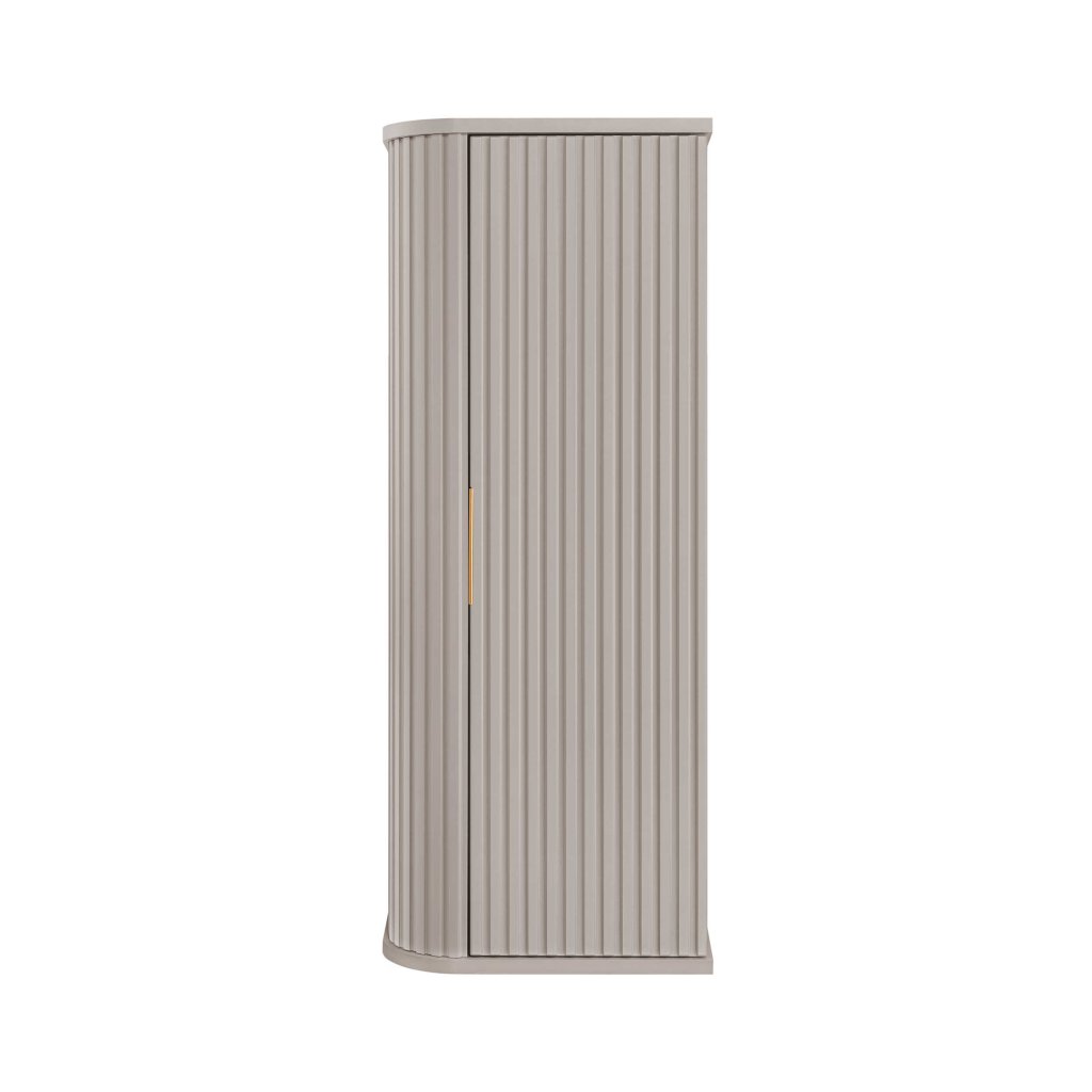 Závěsná koupelnová skříňka ELEGANCE Cashmere je ideální volbou, chcete-li koupelnu opticky odlehčit a zároveň získat praktický úložný prostor. Díky montáži na zeď působí prostor vzdušněji, snáze se udržuje čistota pod skříňkou a celá koupelna získá modernější charakter. Dominantním prvkem je vertikálně drážkované čelo , které dodává skříňce prémiový vzhled a styl, který je aktuálně velkým trendem v interiérovém designu. Béžová barva je lehce kombinovatelná – skvěle ladí s béžovým i bílým obkladem, dřevodekorem, černými doplňky i zlatými detaily. Právě zlatá úchytka působí jako jemný šperk, který celý design příjemně zvýrazní. Závěsná skříňka do koupelny ELEGANCE je skvělá volba pro ty, kteří chtějí čisté linie, moderní styl a funkční prostor pro každodenní věci – bez kompromisů.
