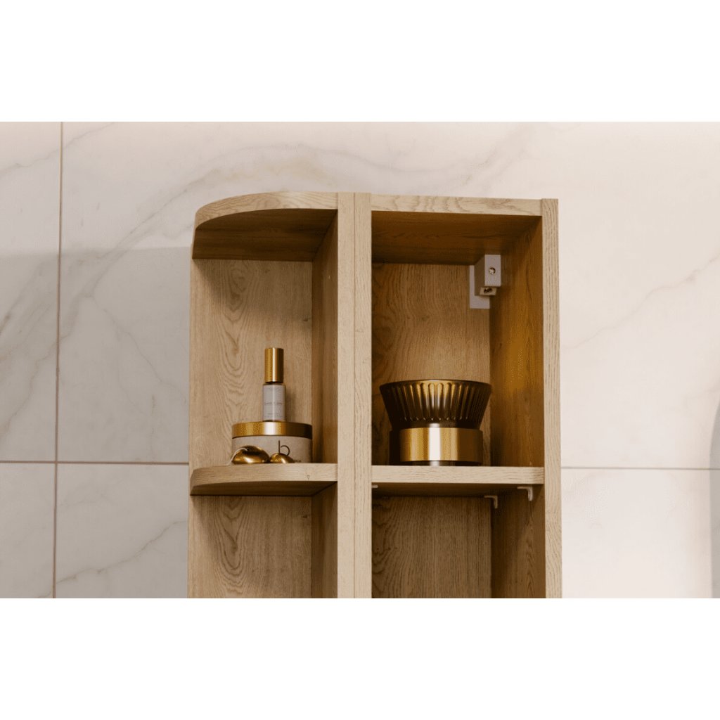 Doplňte svoji koupelnu o praktický a designově čistý prvek. Závěsný otevřený regál ASTER Green 83-15-80 SM v moderním dekoru dub cremona přináší ideální kombinaci estetiky, úložného prostoru a úspory místa. Díky vertikálnímu provedení je regál ideální i do menších koupelen, kde je důležité efektivně využít každý centimetr. Minimalistické linie podtrhuje moderní charakter nábytku. Povrchová úprava je navržena tak, aby odolávala vlhkosti a každodennímu používání v koupelnovém prostředí.