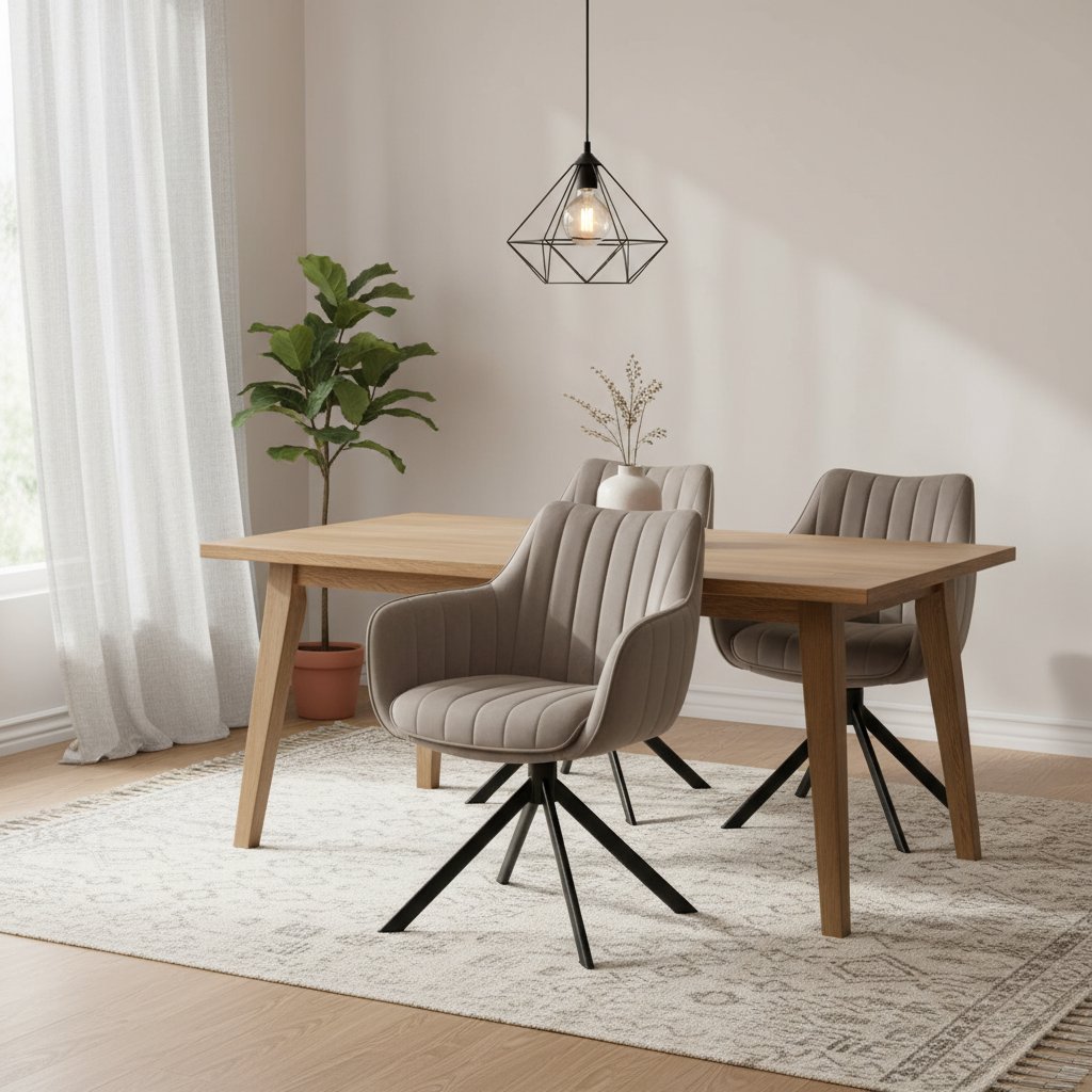 Židle AZALIA je návrhem univerzální židle. Tento model byl čalouněn kvalitní tkaninou se zajímavým prošíváním, její sedátko je také měkké a pohodlné a loketní opěrky poskytují větší komfort. Konstrukce je stabilní z kovu, lakovaná černou matnou barvou. Židle AZALIA má velmi jedinečnou výhovu, kterou je schopnost otáčení až o 180°. Perfektně se hodí do moderního interietu u stolu v kuchyni nebo v jídelně, ale může být také u pracovního stolu.